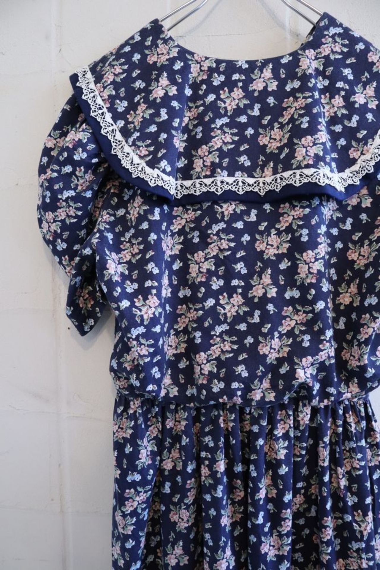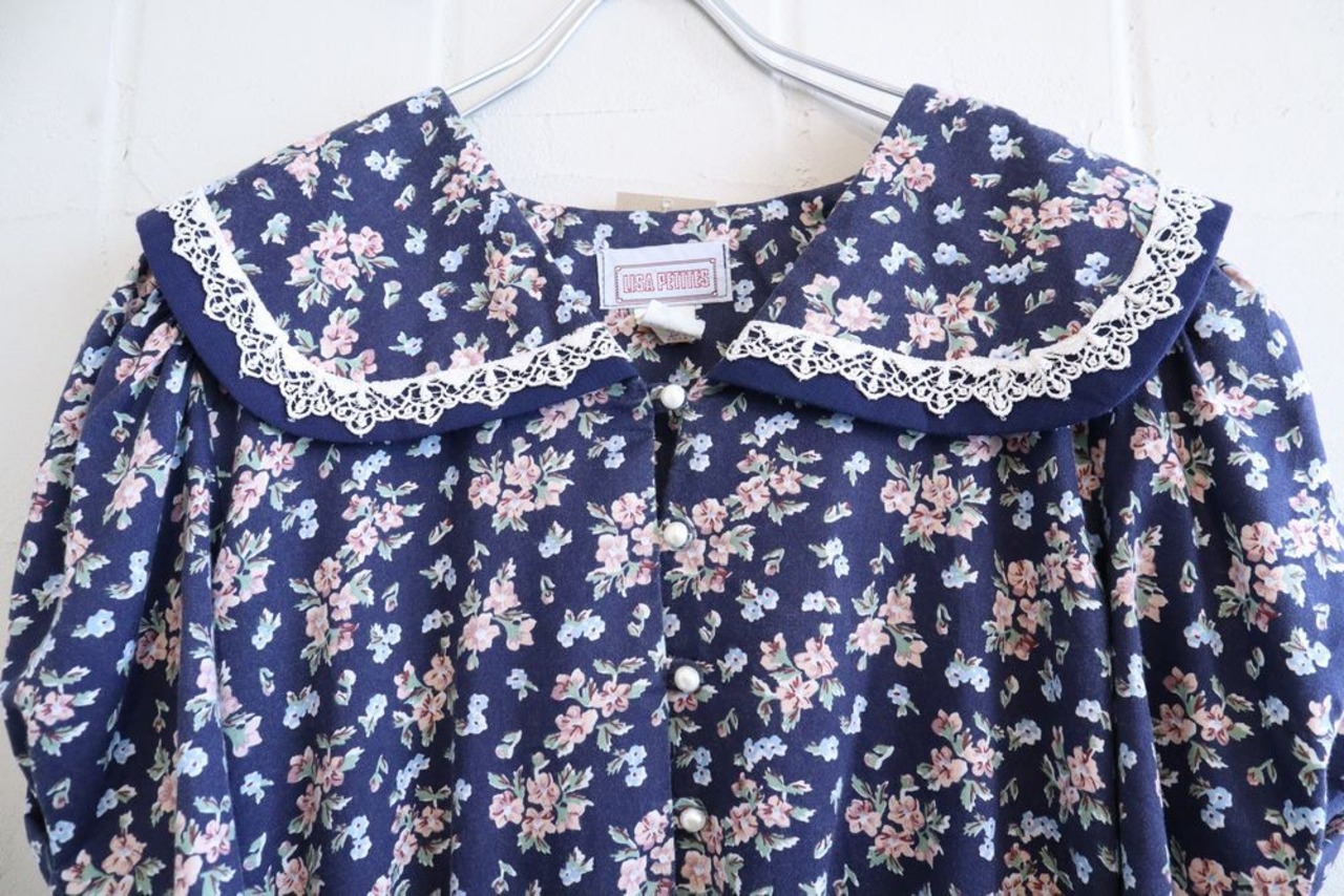 made in USA navy × pastel pink flower sailor collar dress [l-1098]