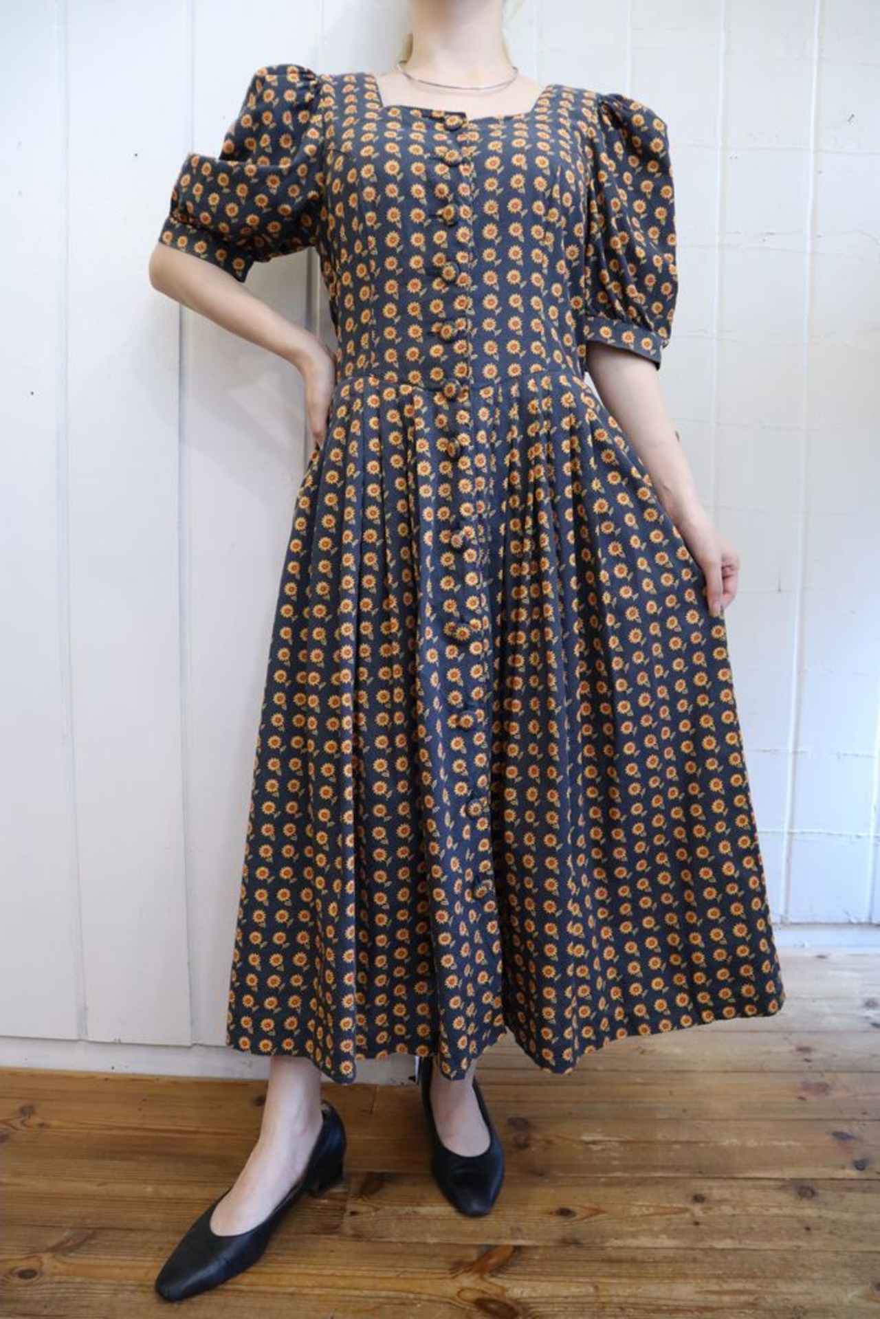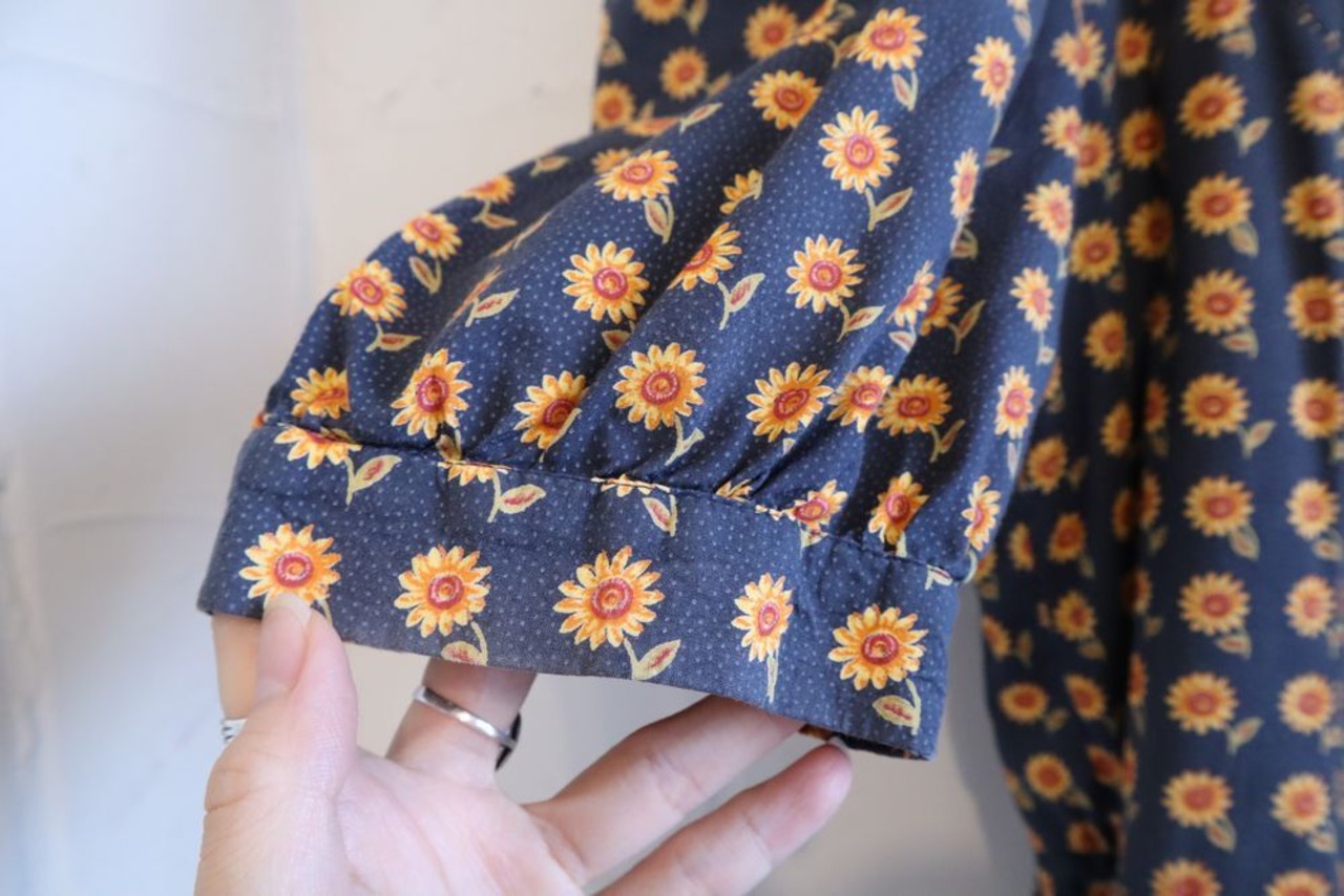 dull blue × yellow sunflower tyrol dress [l-1099]