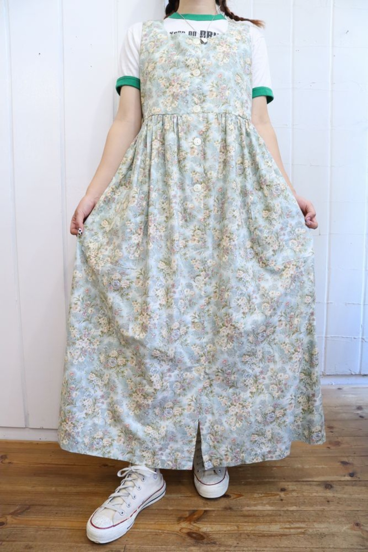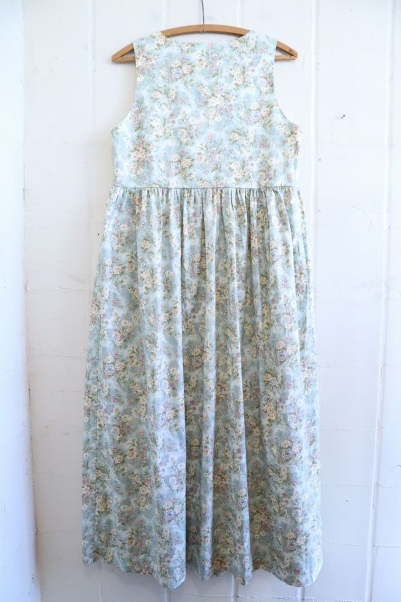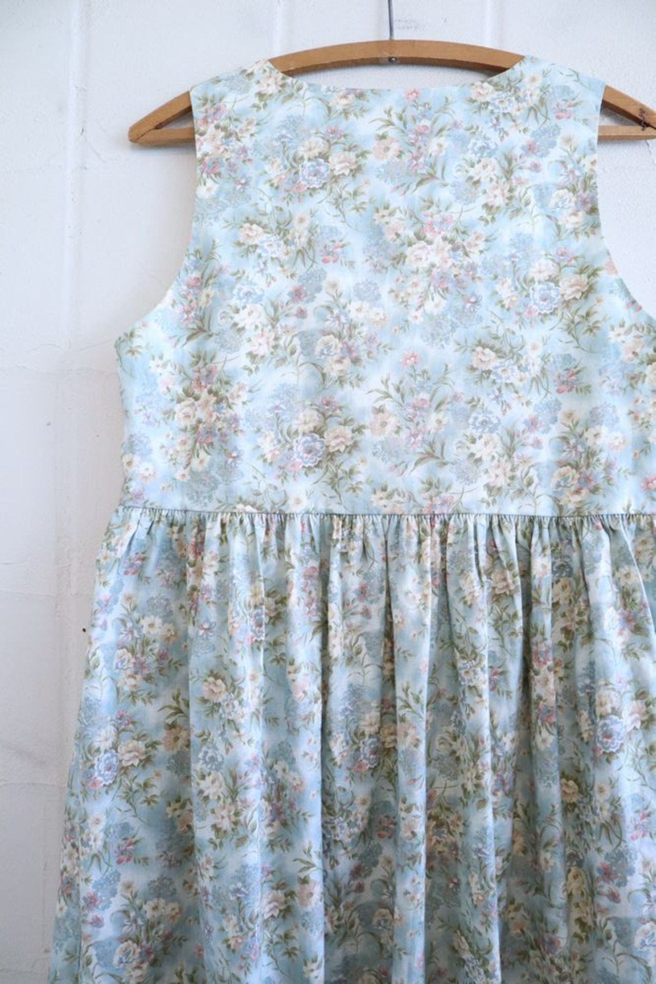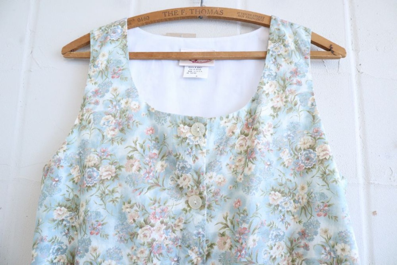 made in USA dull blue × white flower dress [l-1102]