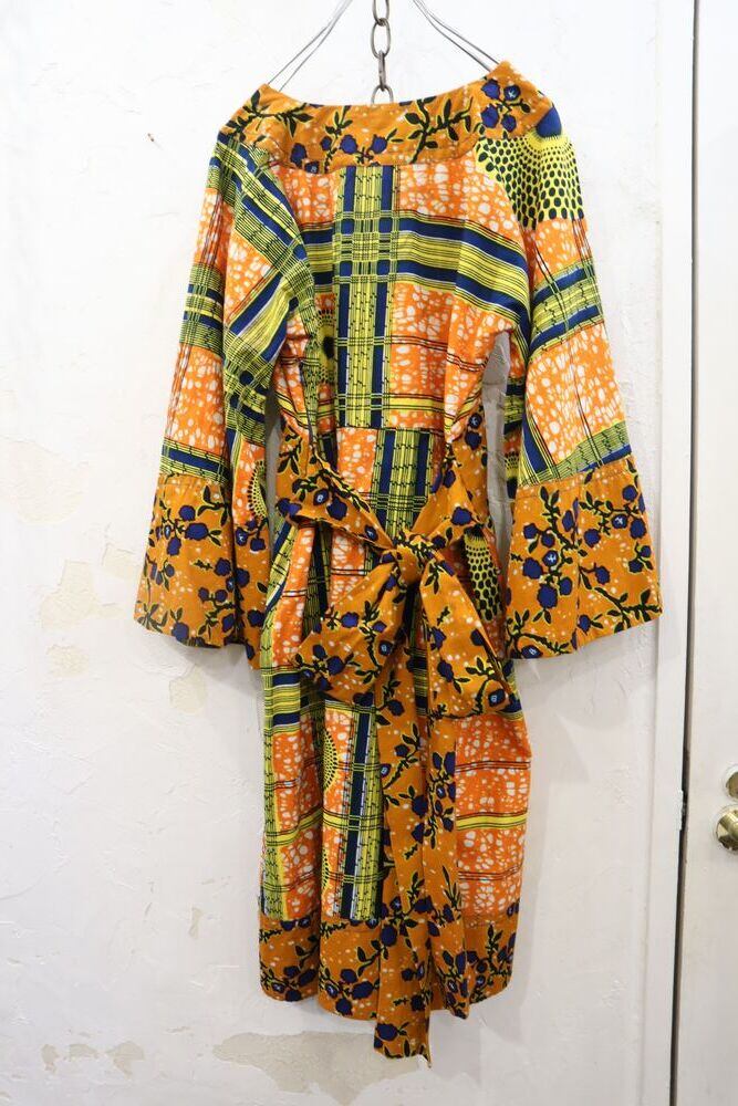 orange×yellow×blue african batik wide sleeve dress [l-1108]