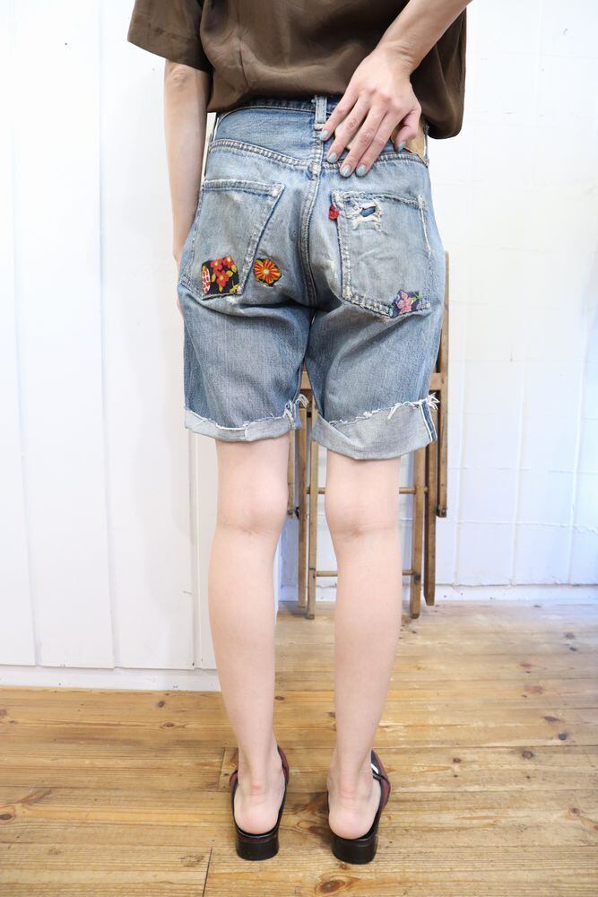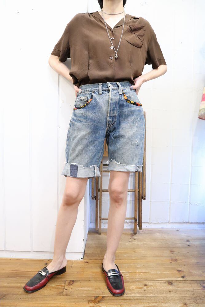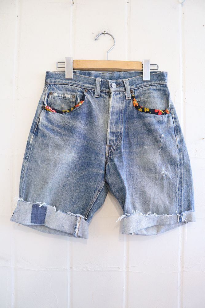 -80s Levi's 501 red line cut off denim pants [l-1112]