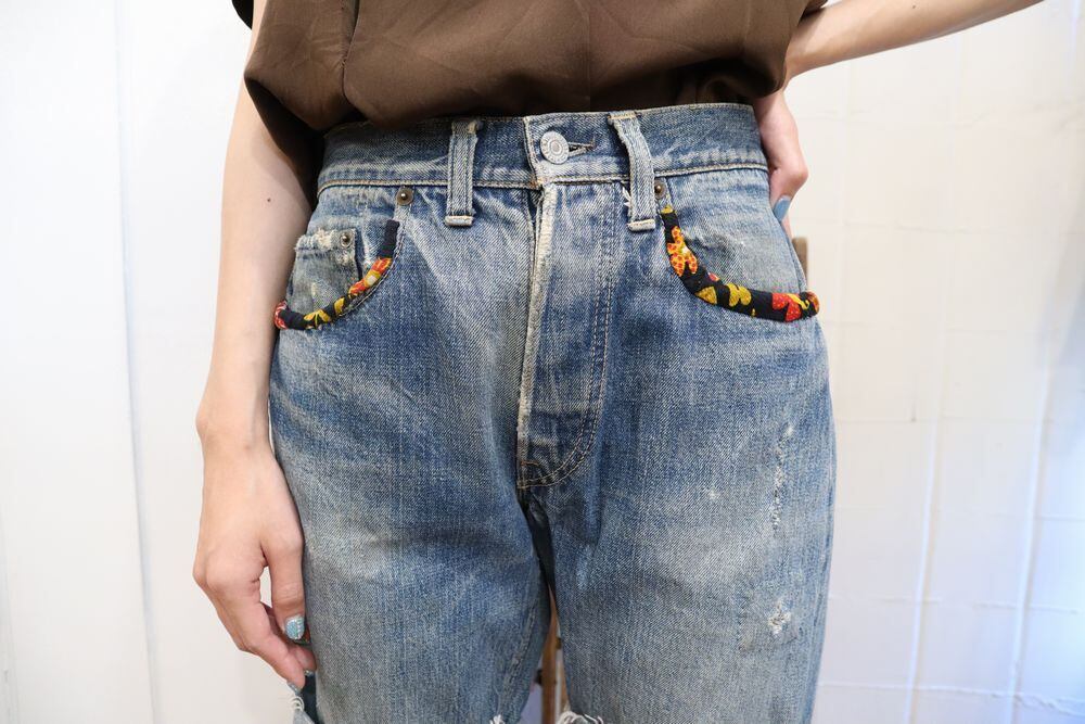 ヒッピーパンツのようなリメイクがとても可愛く、ヴィンテージ好きにはたまらない一枚かと思います。