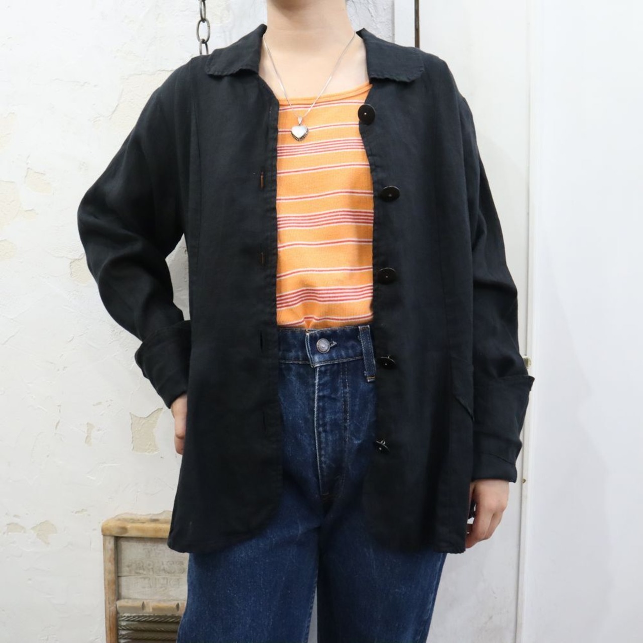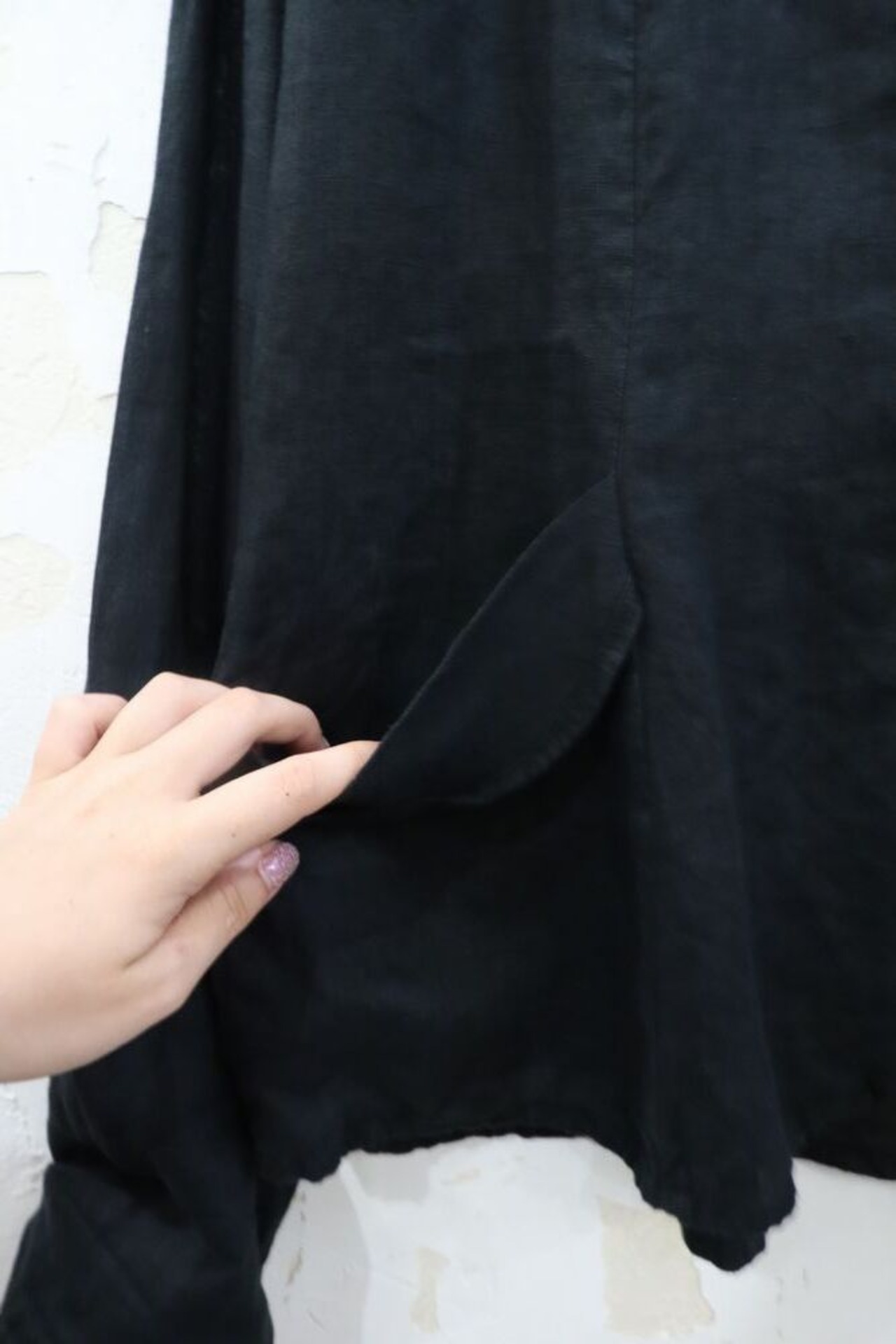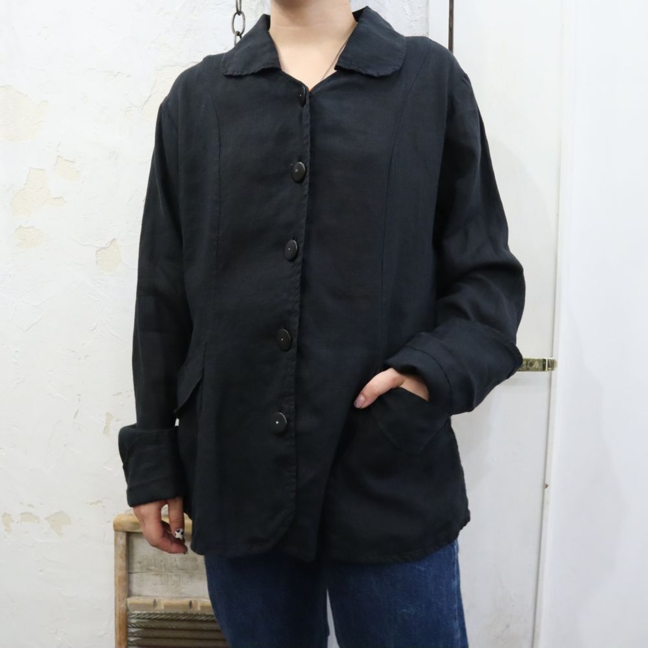 ”FLAX” black plain long sleeve linen shirt [k-1118]