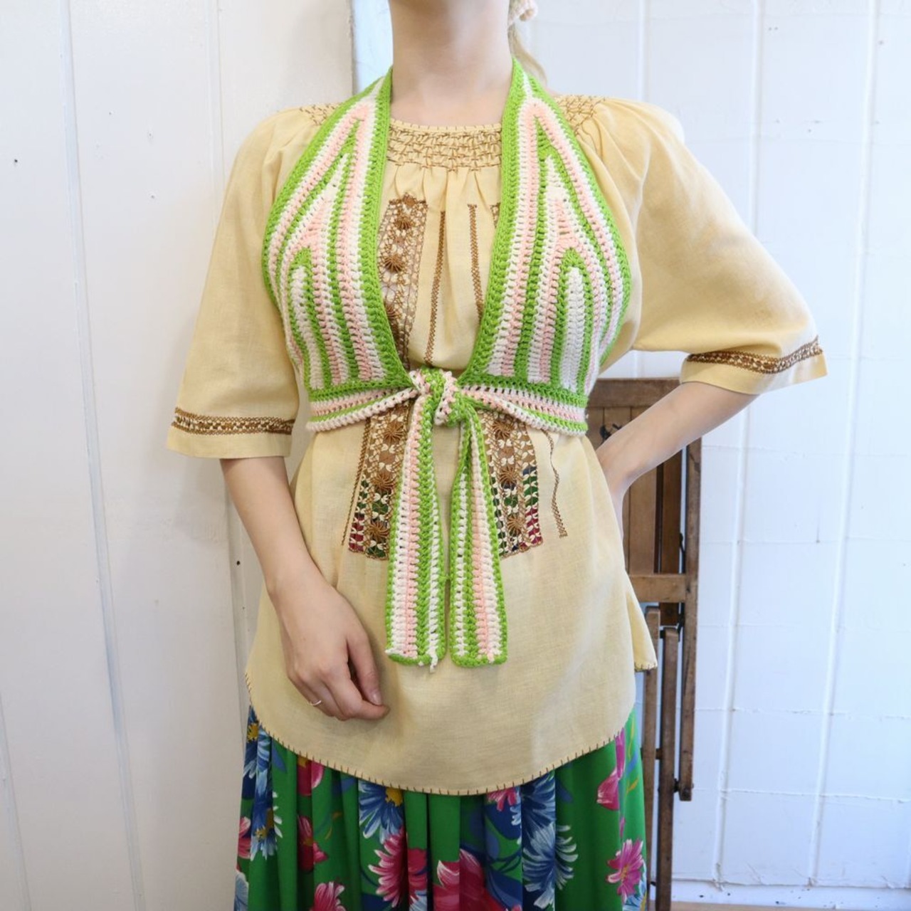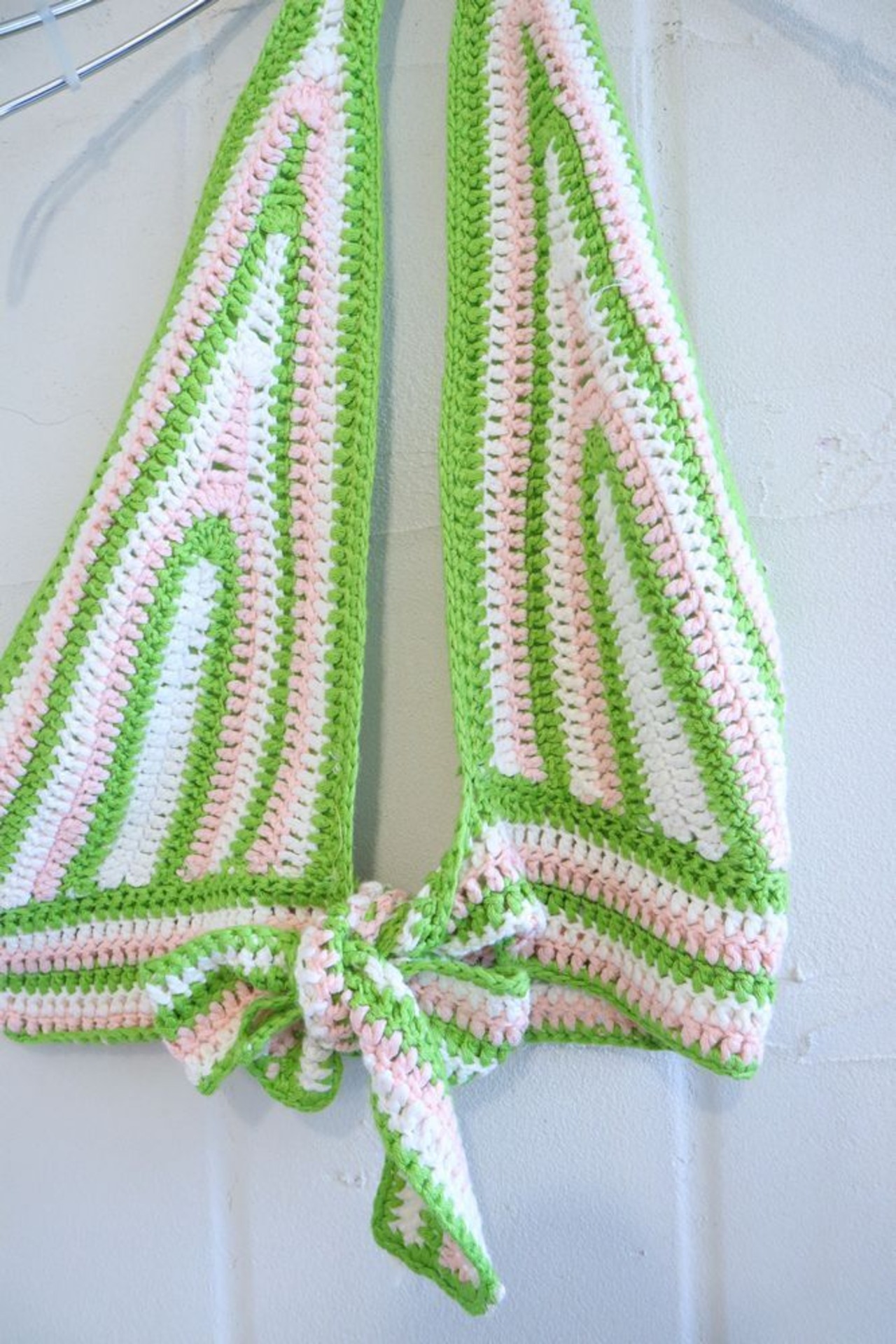 lightgreen×white×pink crochet halter neck vest [l-1119]