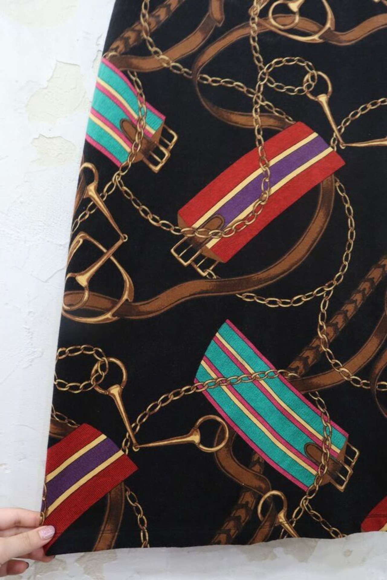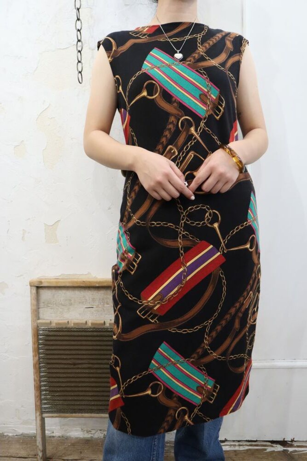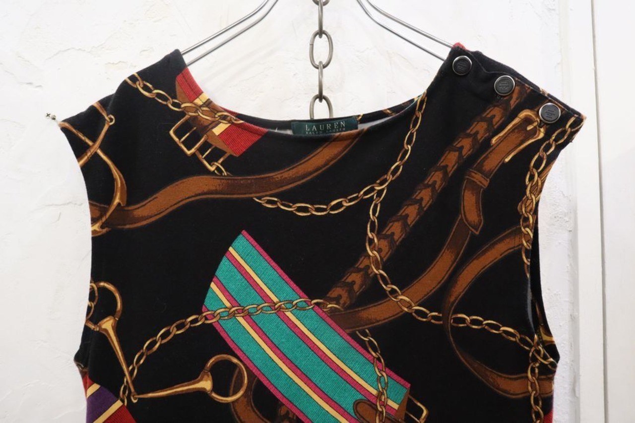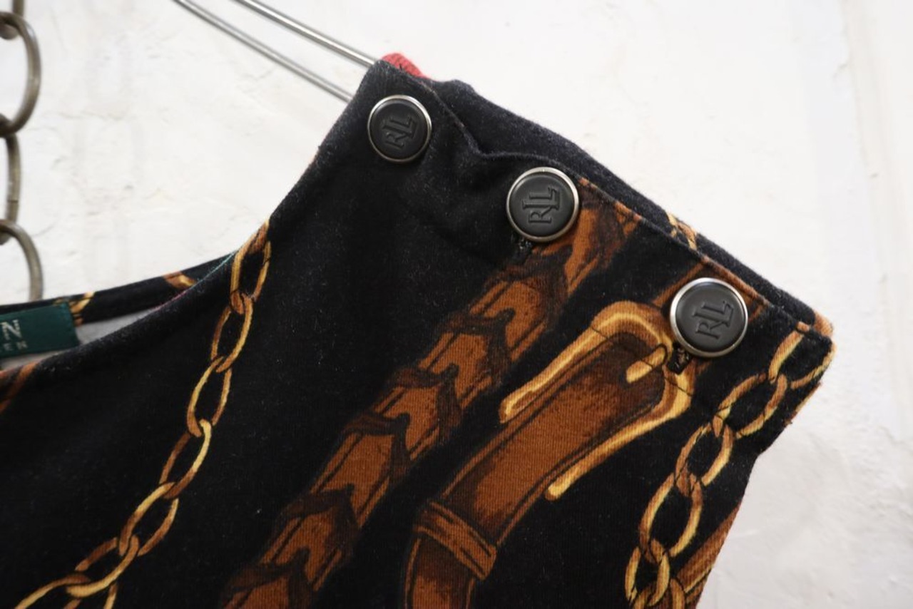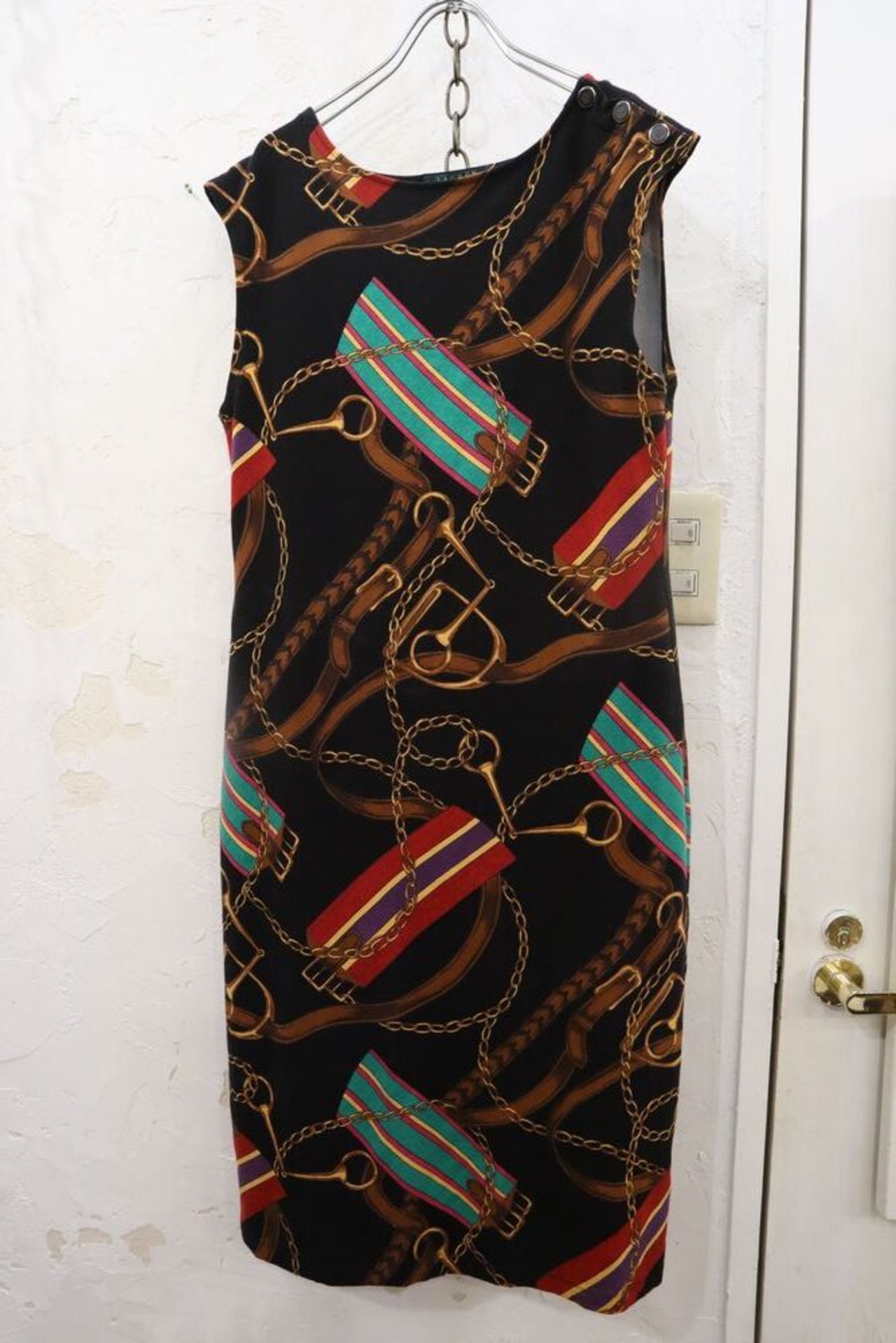"Ralph Lauren" black × brown chain print dress [k-1127]