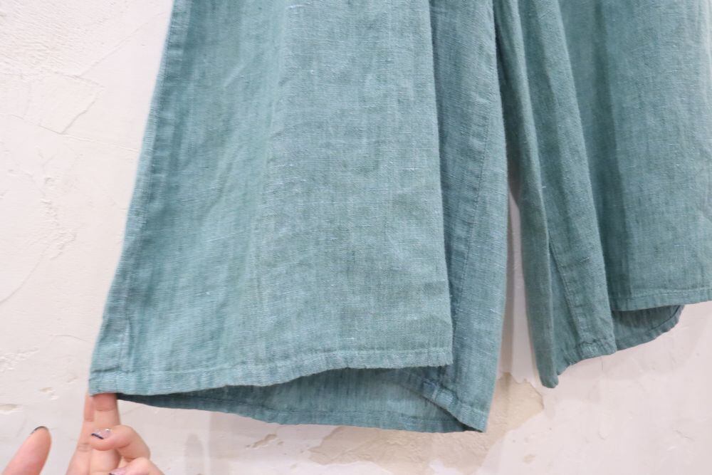 "FLAX" blue green plane pocket linen easy pants [k-1130]