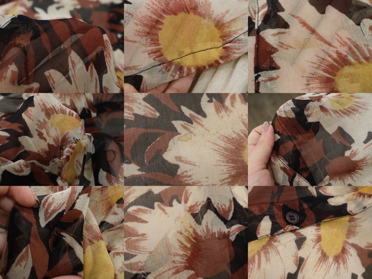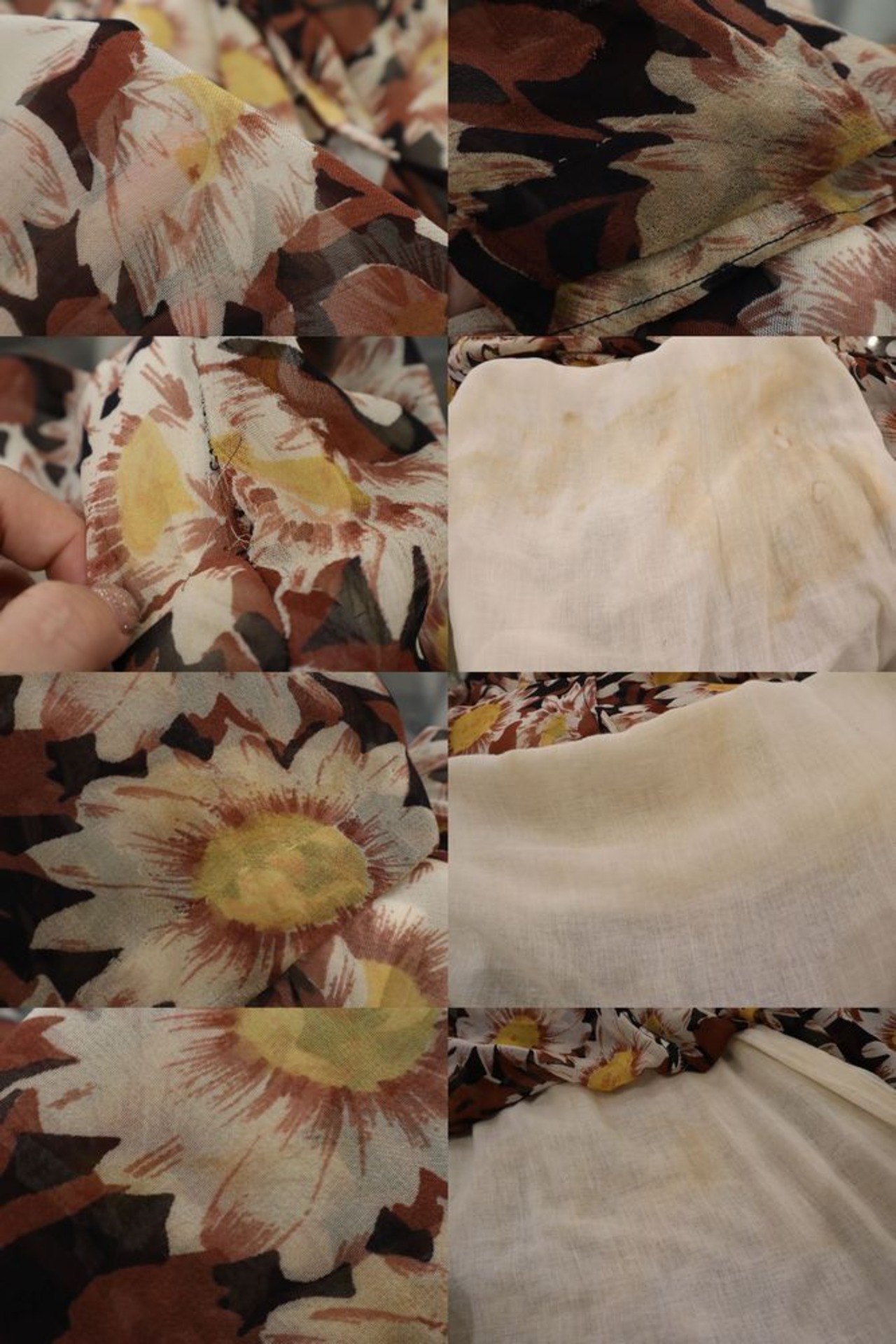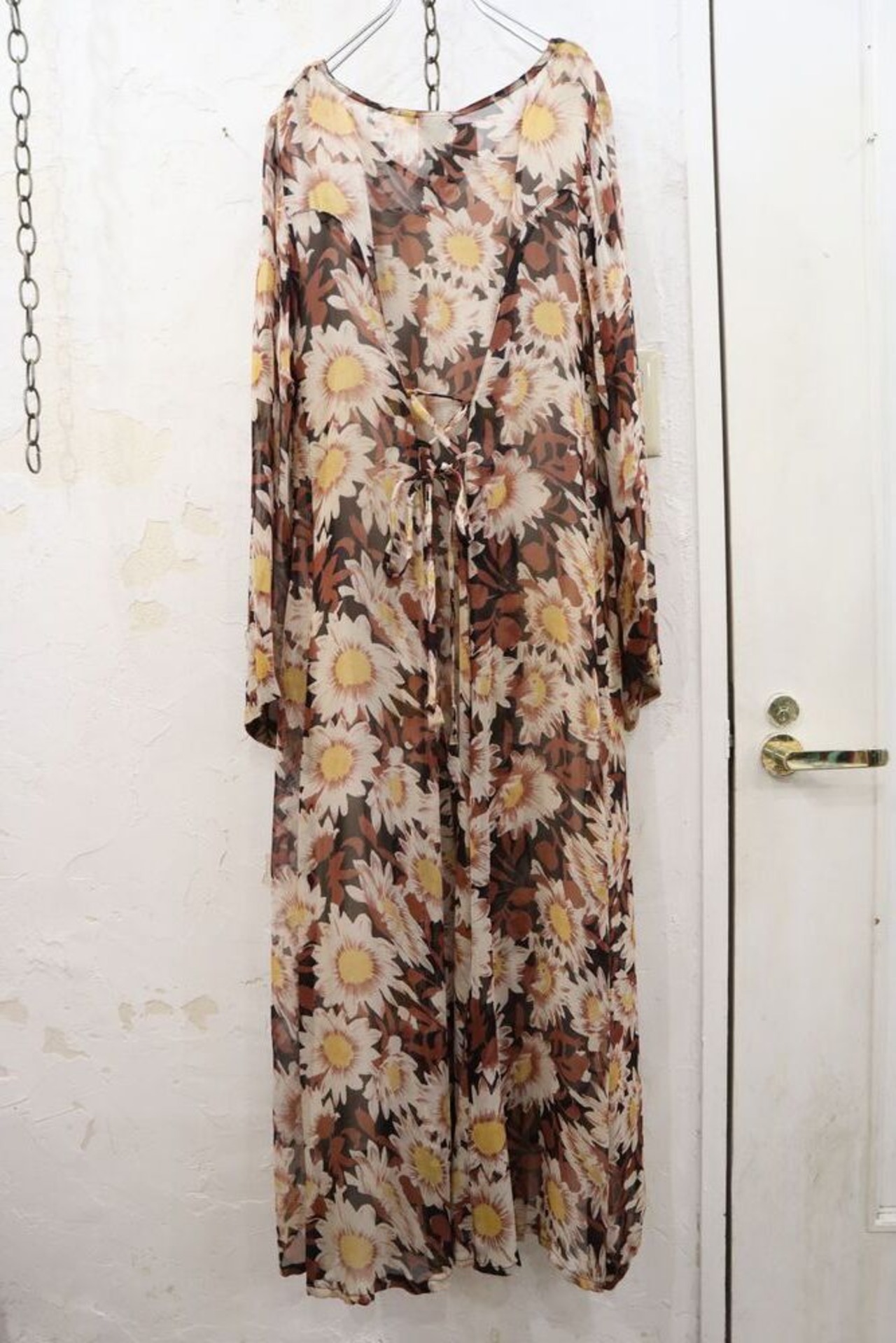 70s brown×black×yellow flower long sleeve dress [k-1150]