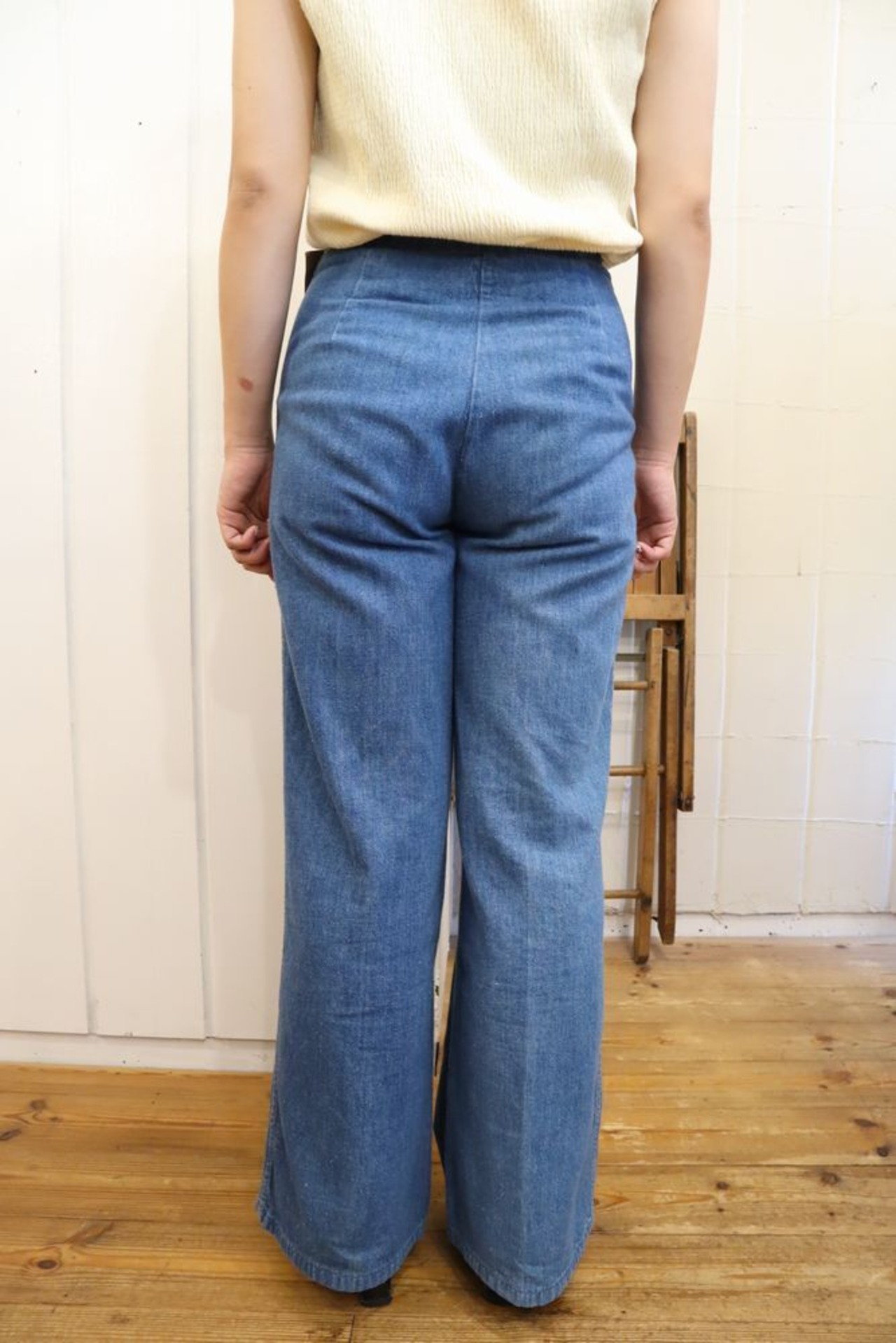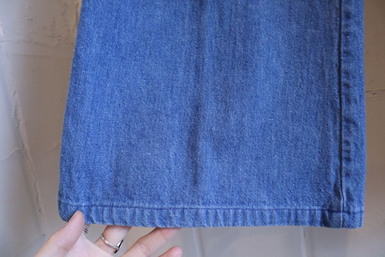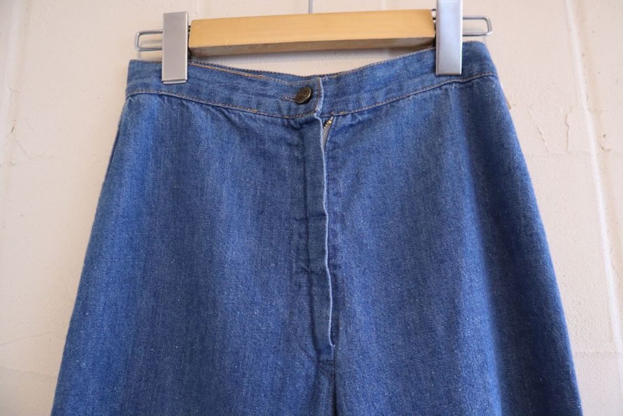 80s- indigoblue orange stitch flare denim pants [l-1154]