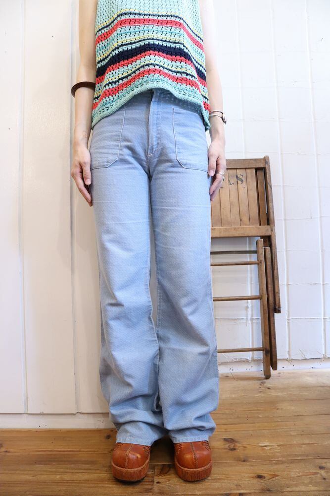 後ろポケットのお花刺繍が可愛い70sデニムパンツです。