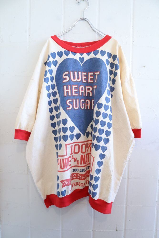 ハートのプリントやポップなフォントが可愛いサックトップスです♡