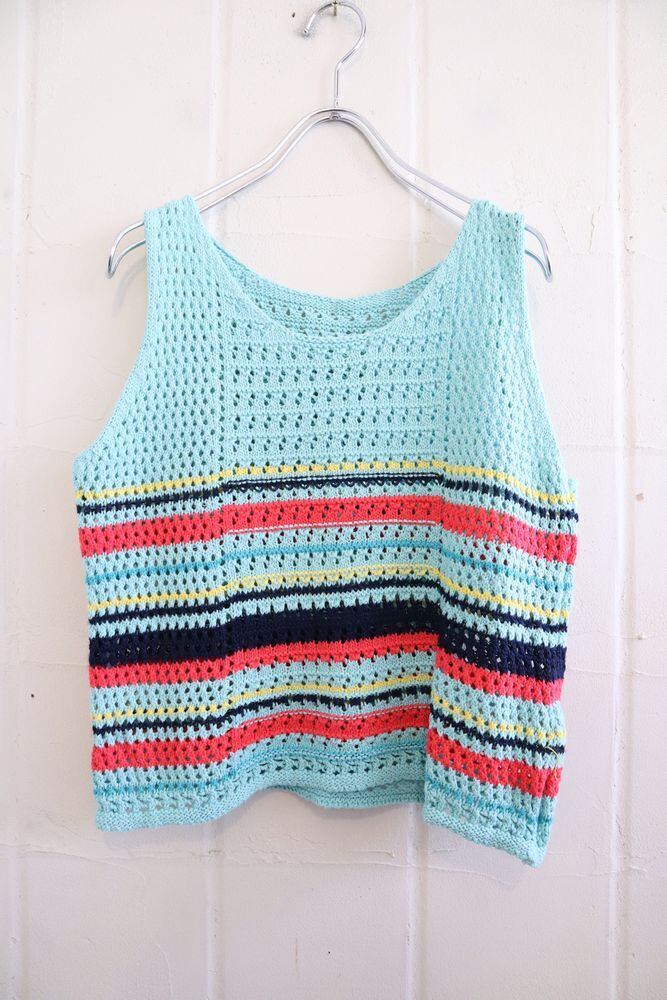 light blue × orange red border crochet tops [l-1171]