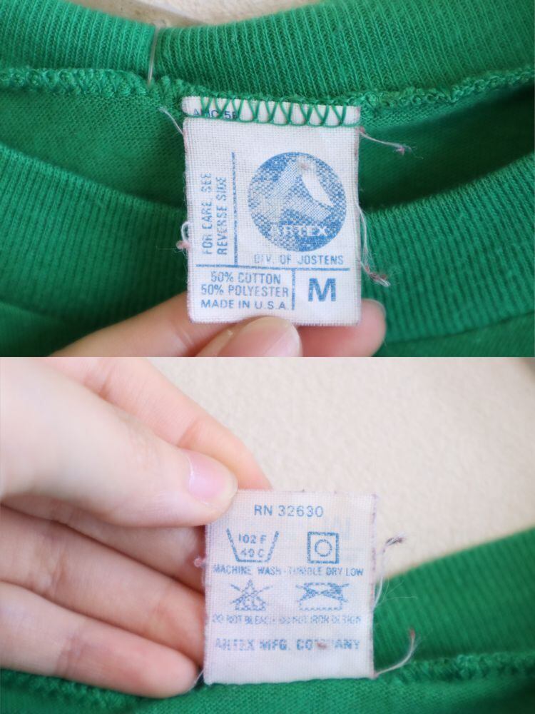 70-80s green×white×yellow character print T-shirt [l-1180]