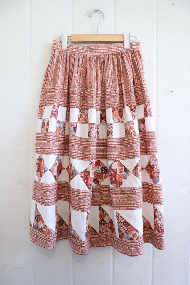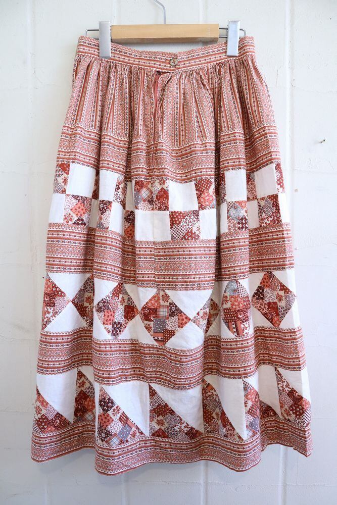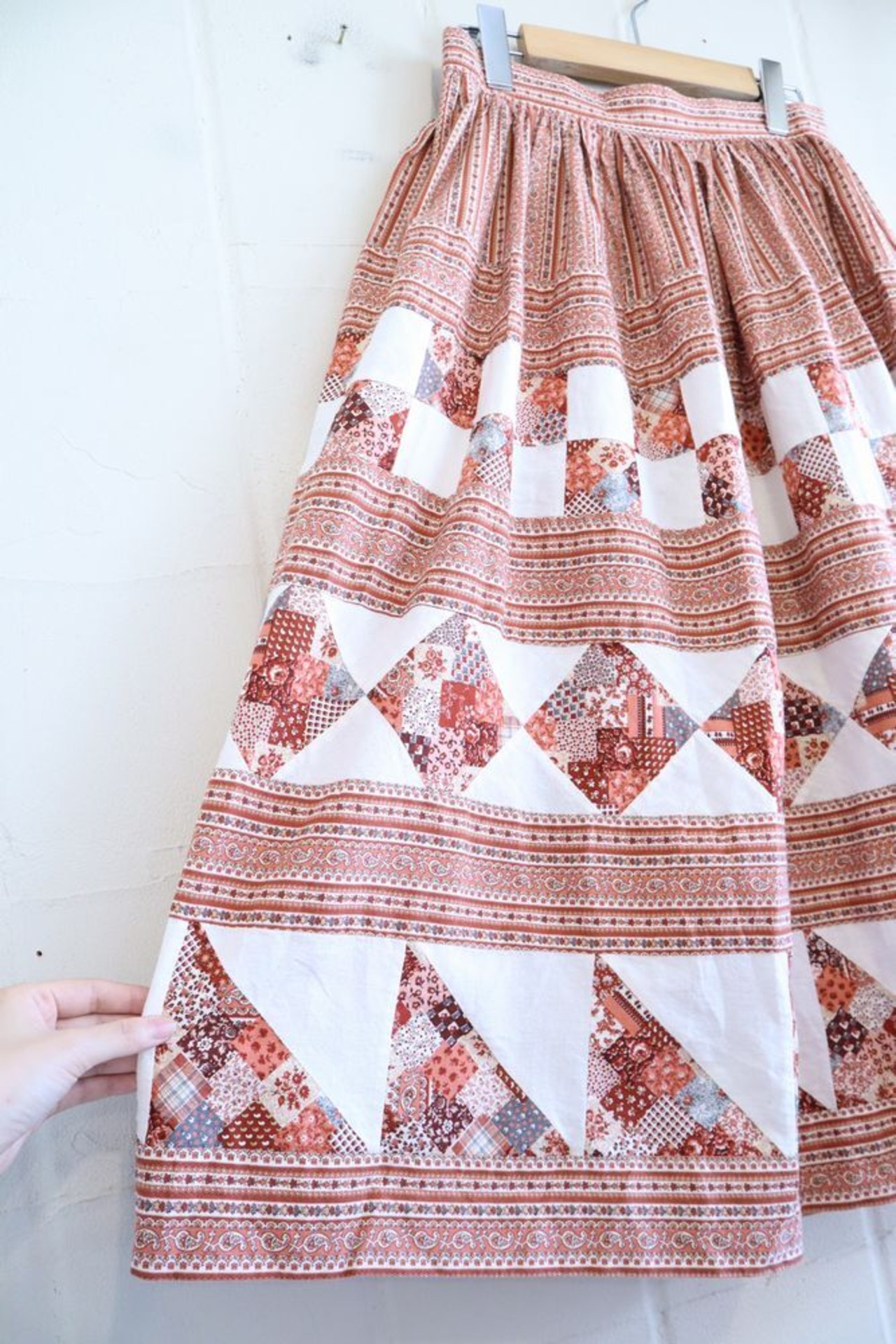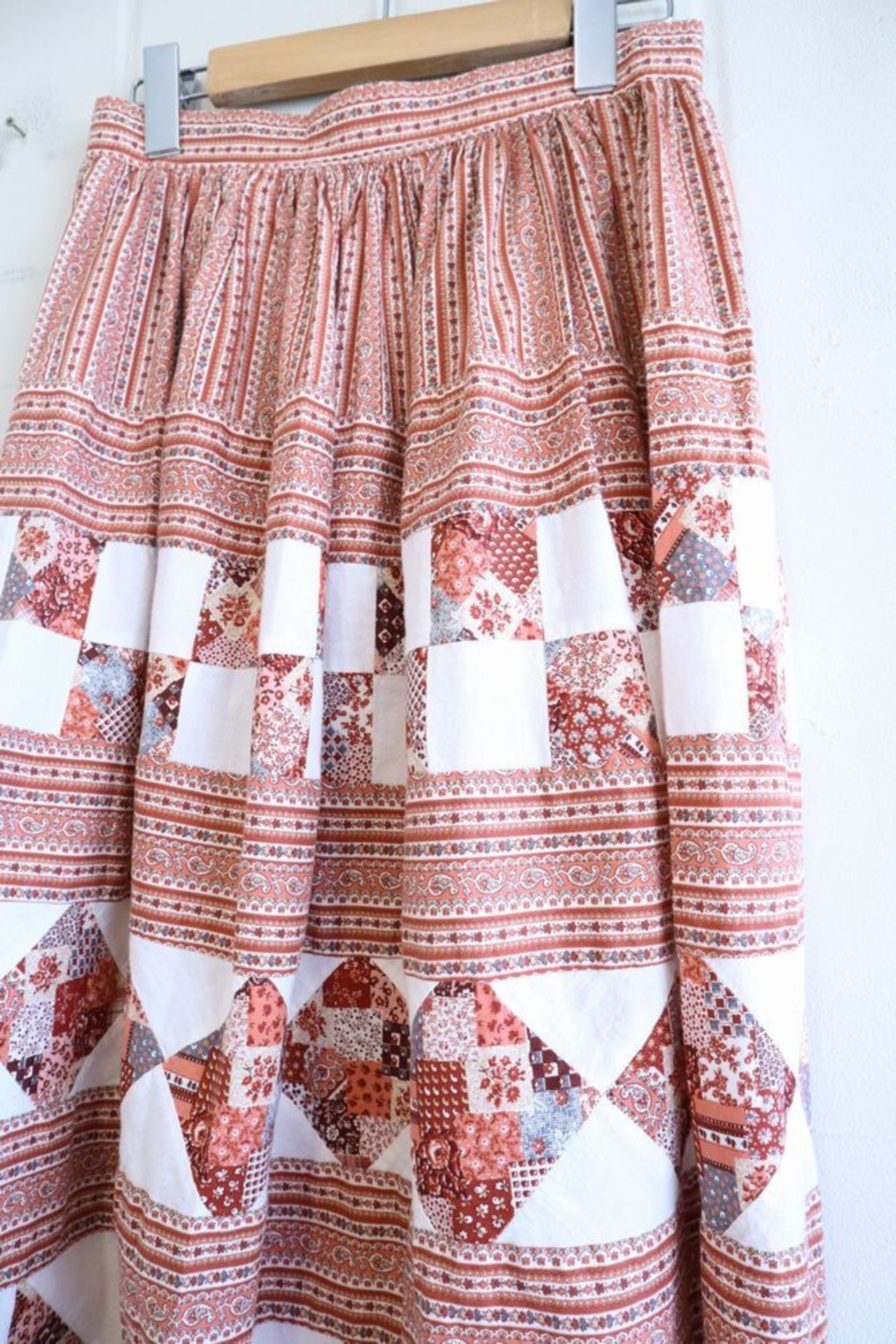 dullpink×white flower&paisley pattern patchwork skirt [l-1181]