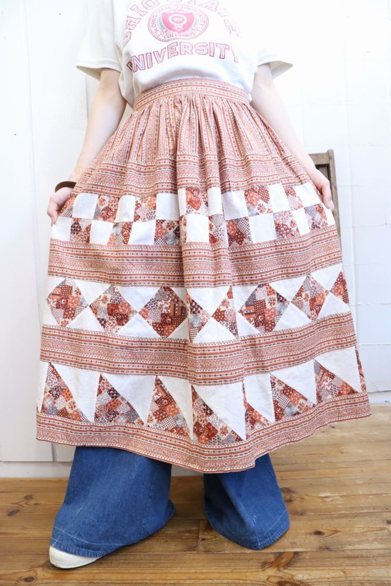 パッチワーク部分とパッチワークプリントの組み合わせが可愛い一枚。