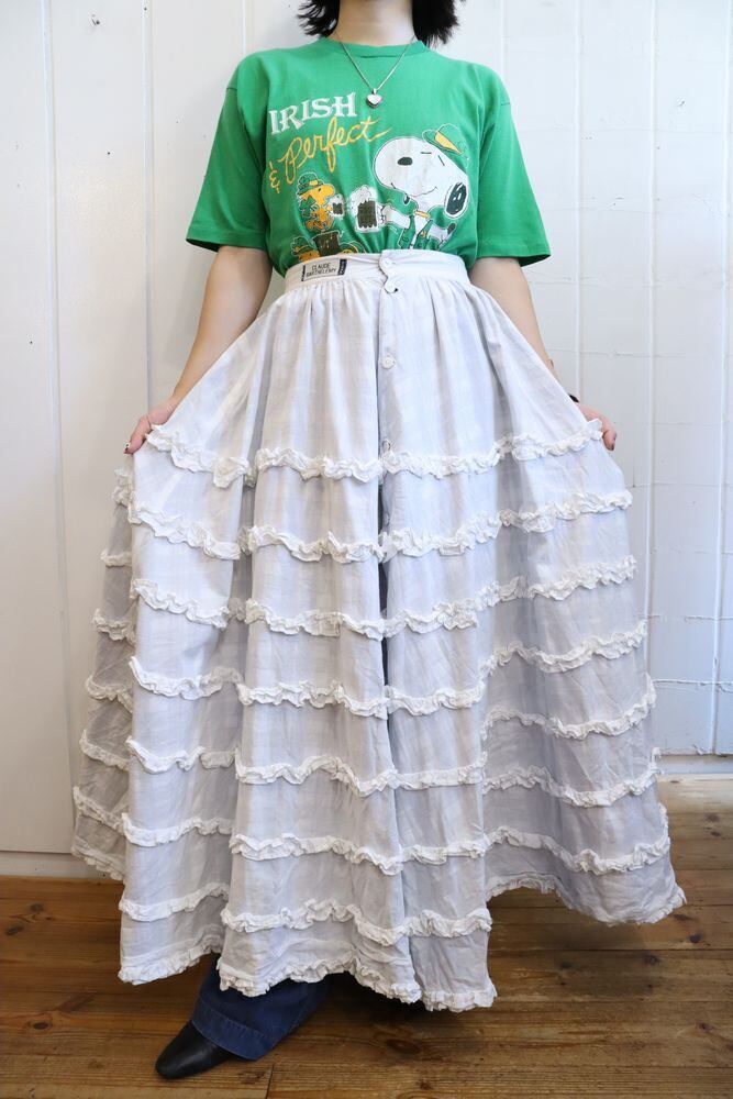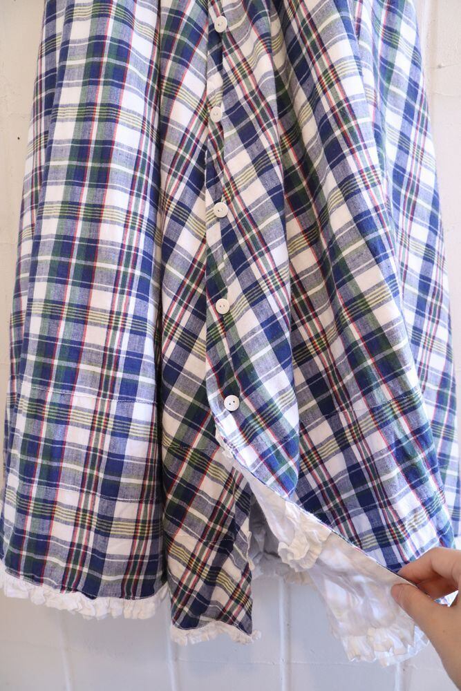 表側がチェックで裏側がフリルのリバーシブルスカートです。