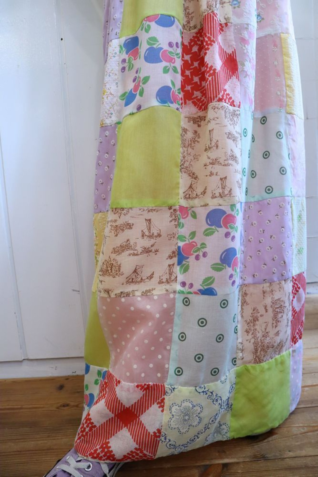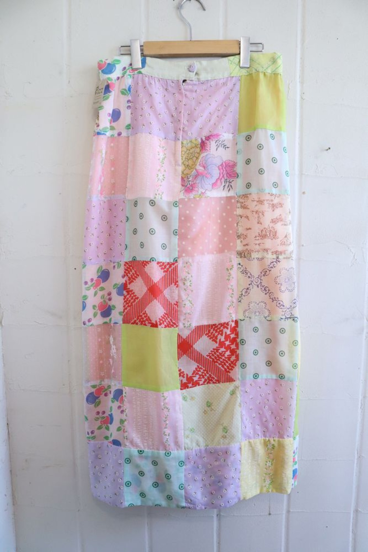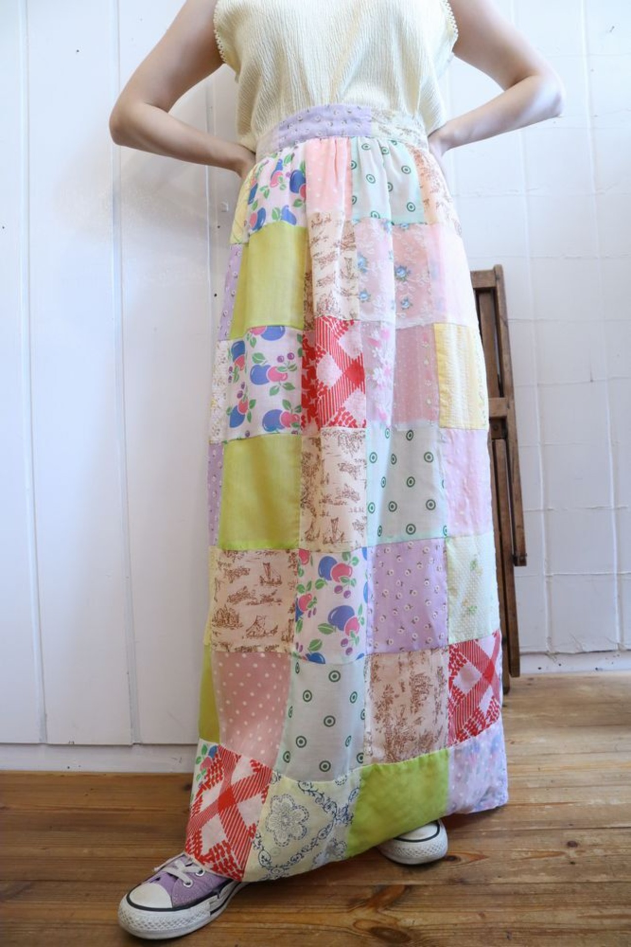 ペールカラーのパッチワークが可愛いスカートです。