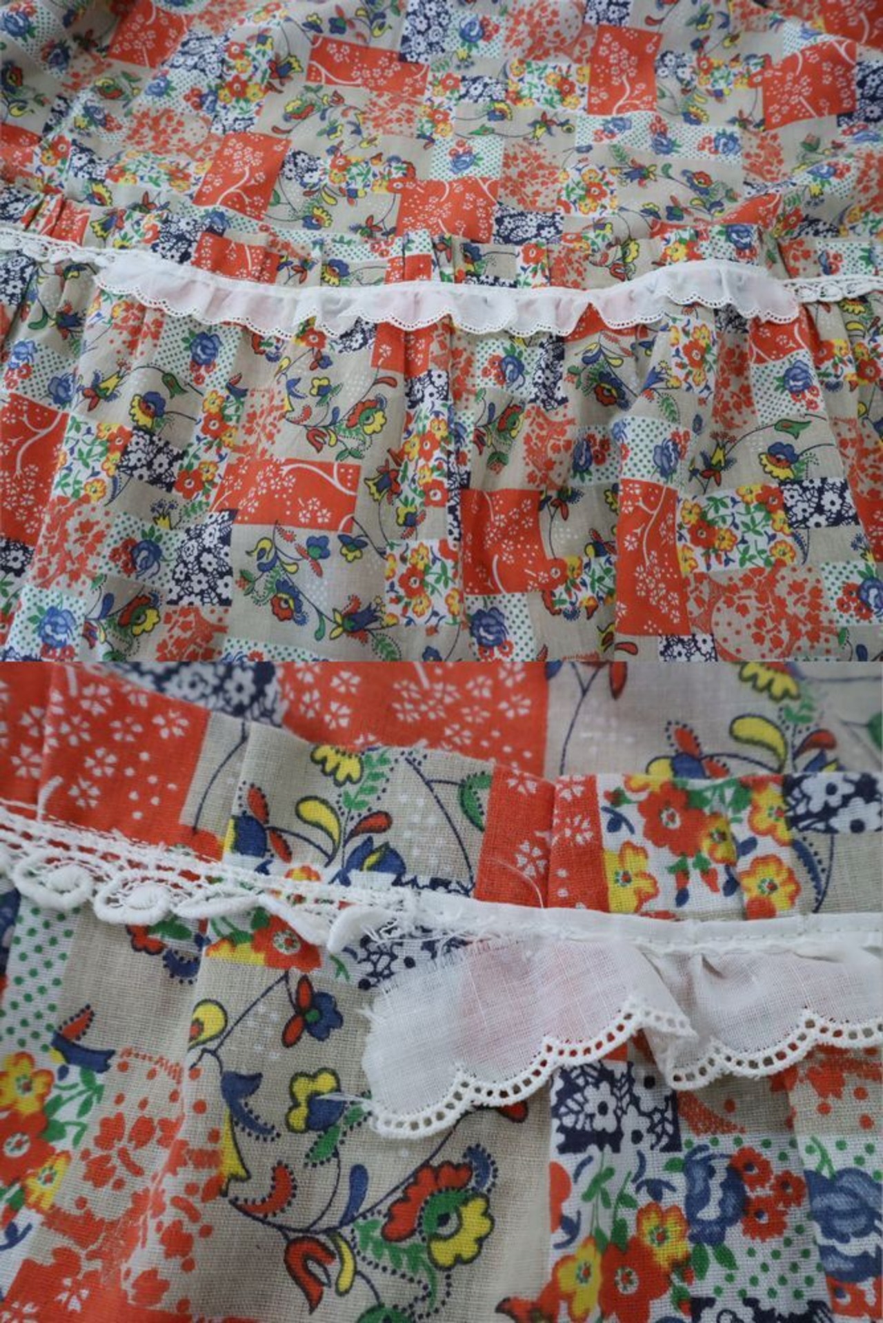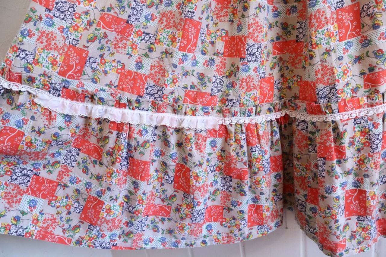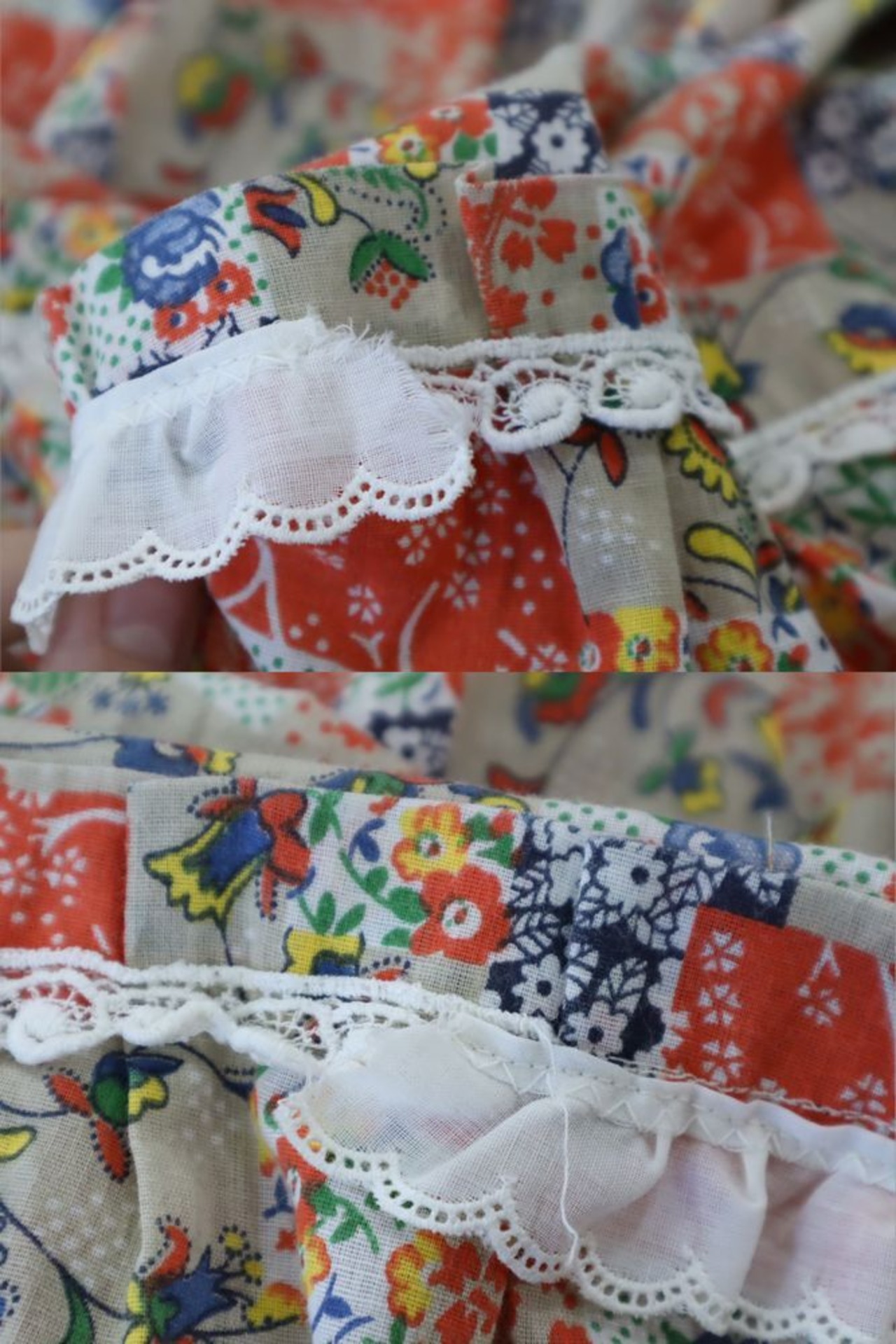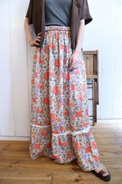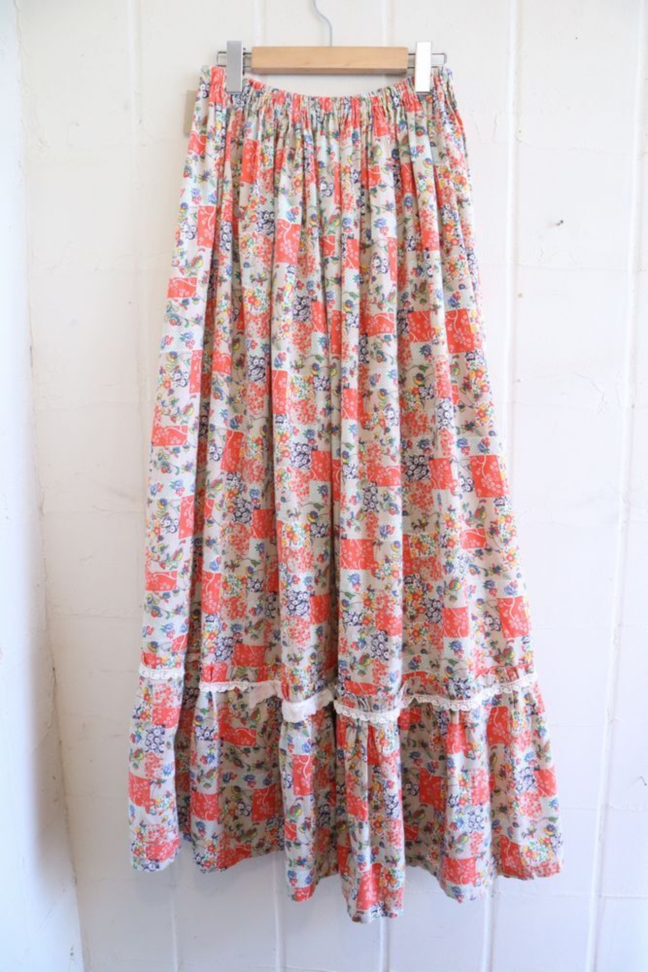 70s beige × pink red flower patchwork print long skirt [l-1188]