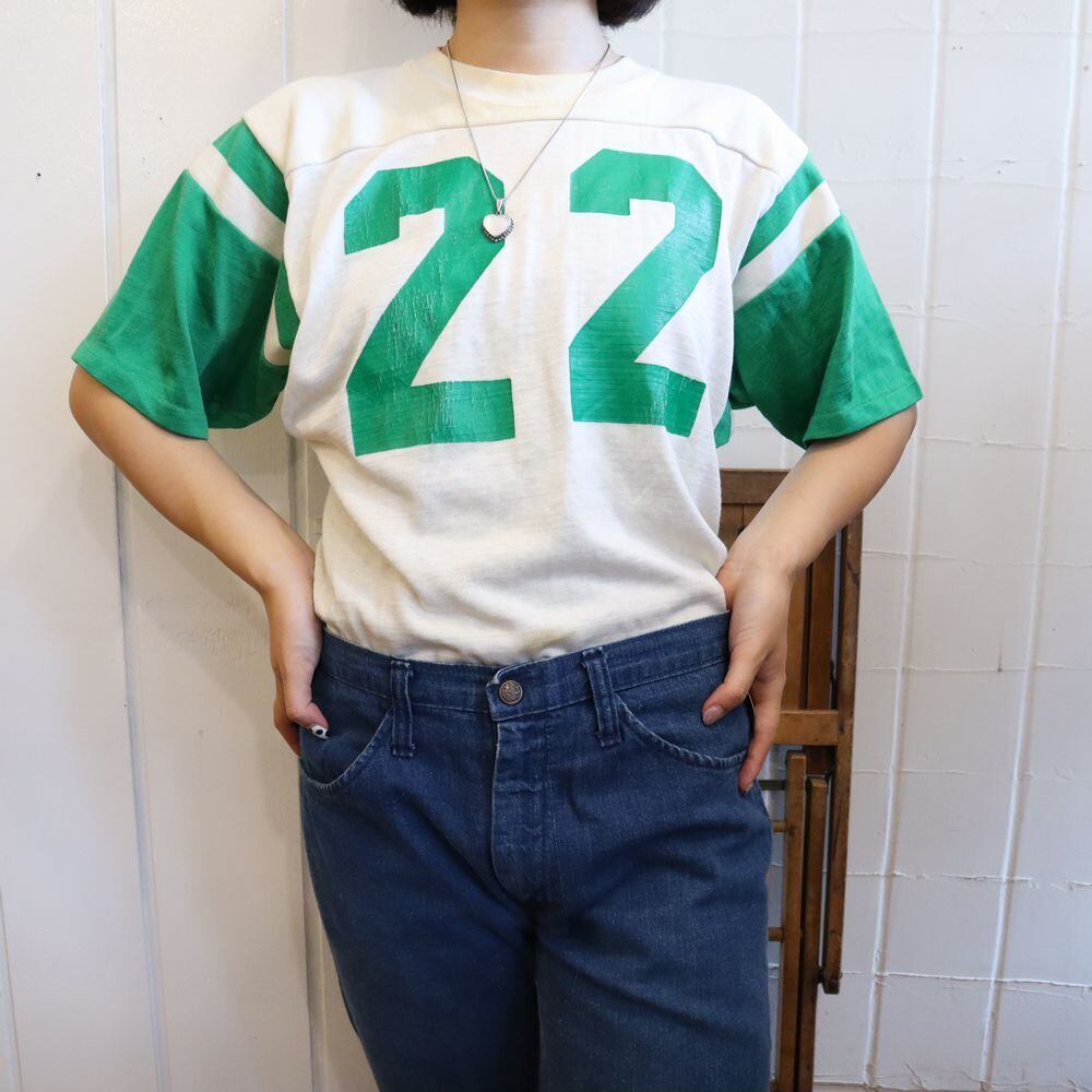 green×white numbering rubber print T-shirt [k-1192]