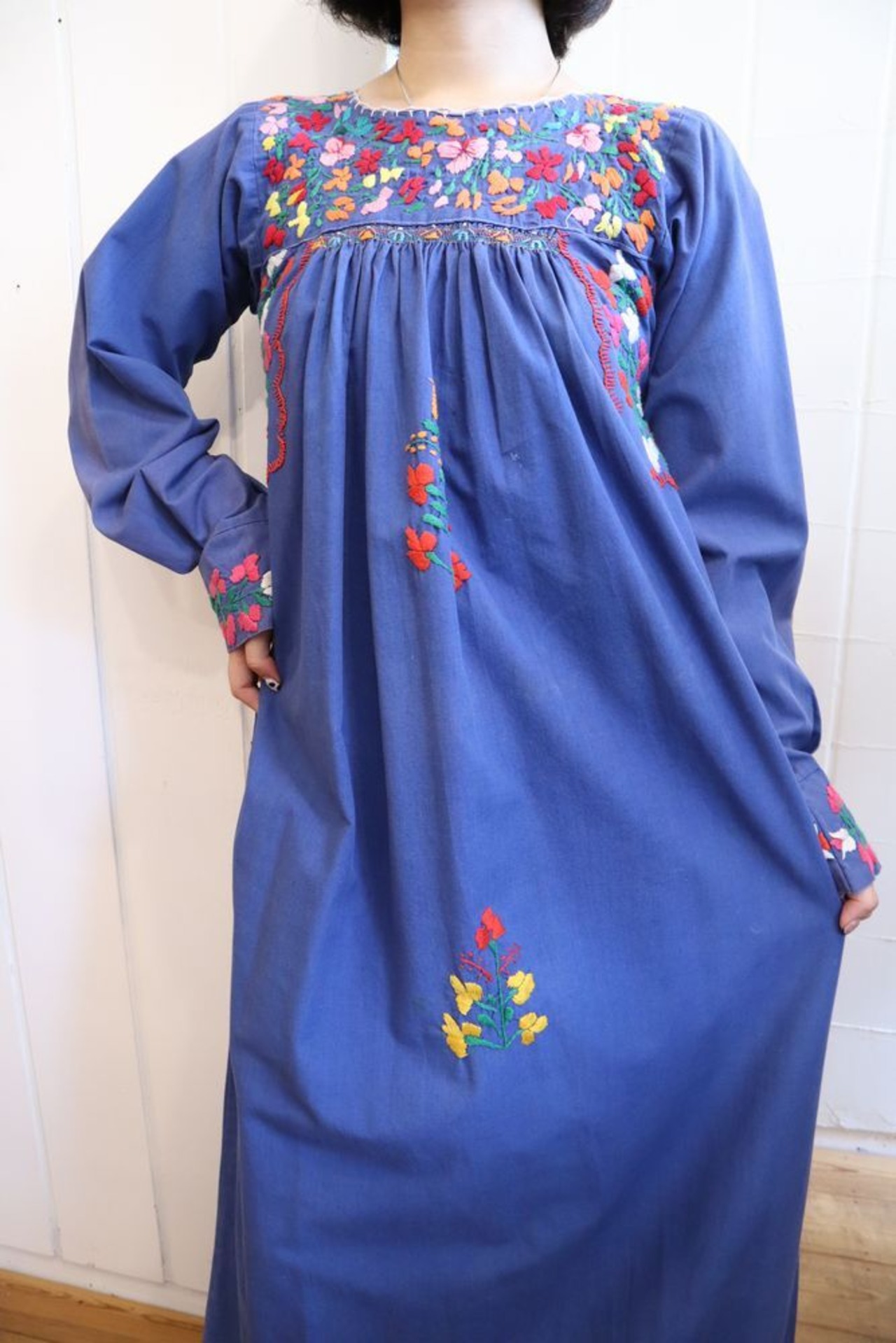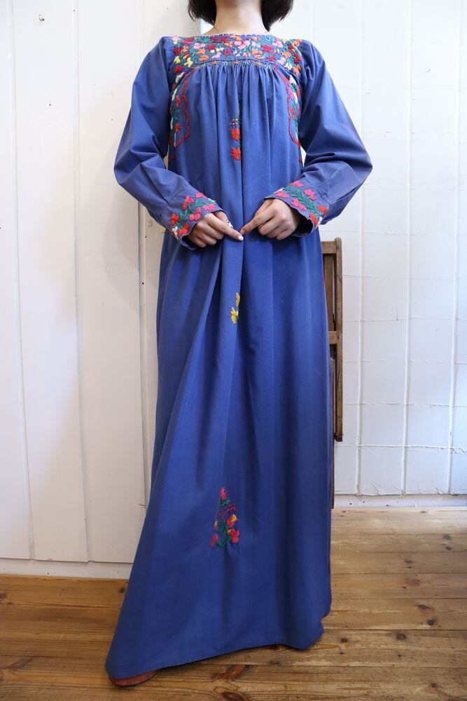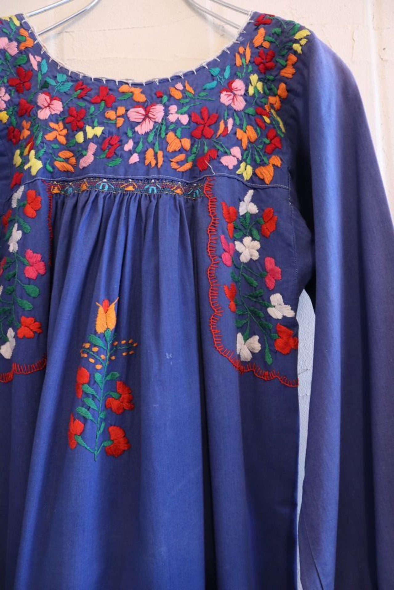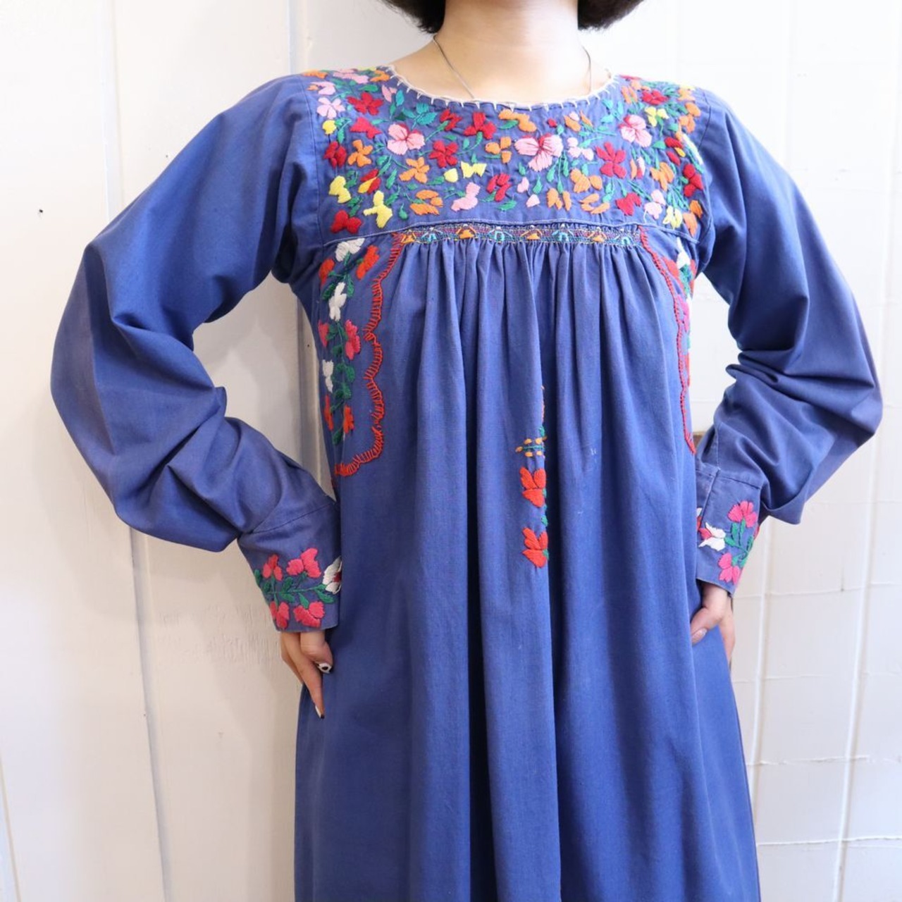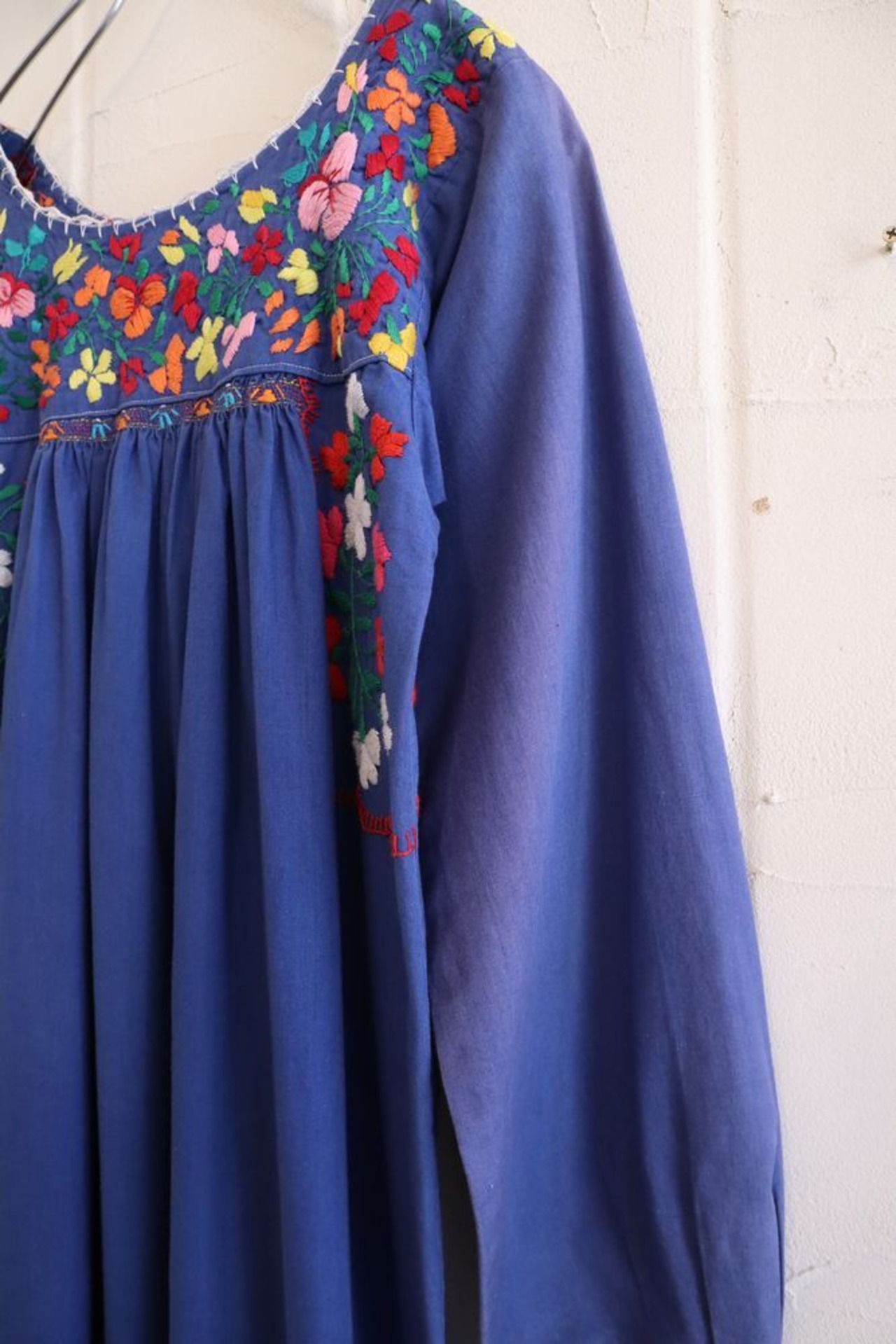 blue×colorful san antonio embroidery Mexican dress [l-1211]
