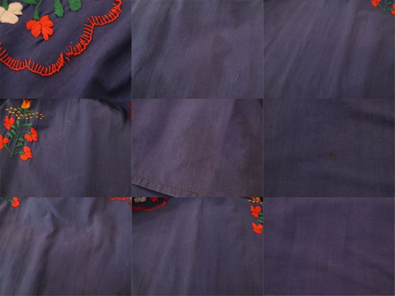 全体的にシミや汚れ、一部刺繍の抜けがございます。