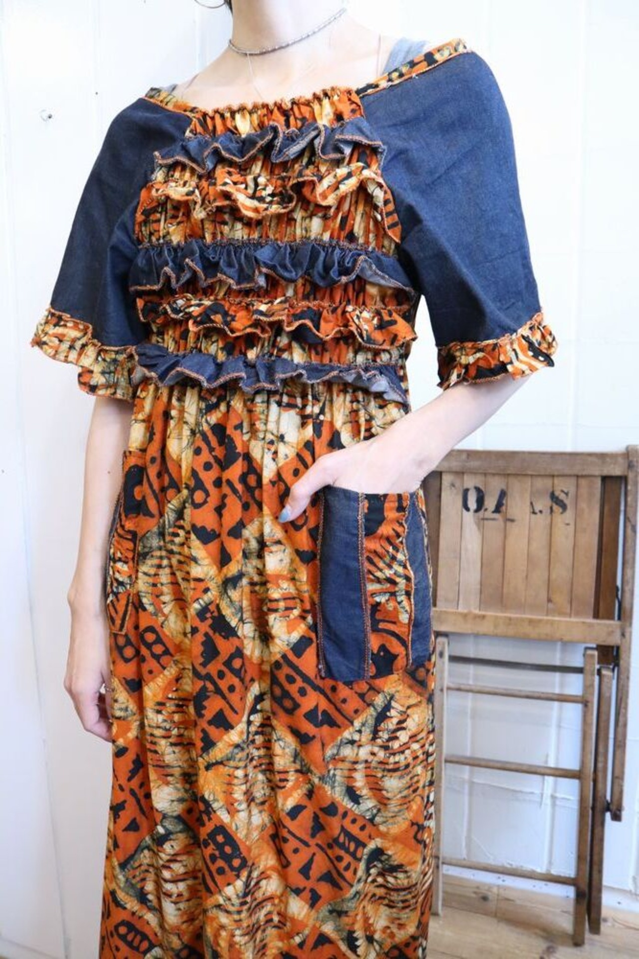 珍しいデニム切替のアフリカンバティックドレスです♡