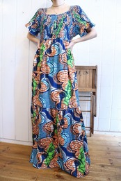 blue×orange×green african batik dress [k-1216]