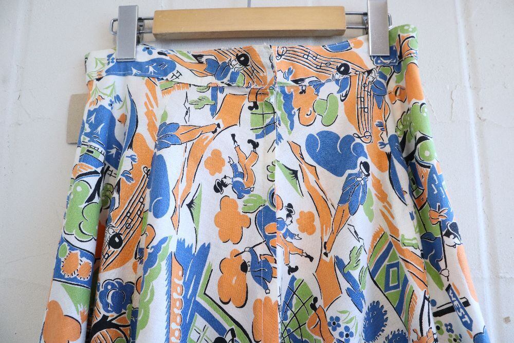 50s orange × blue human & music circular skirt [l-1219]