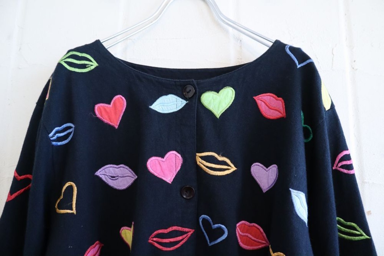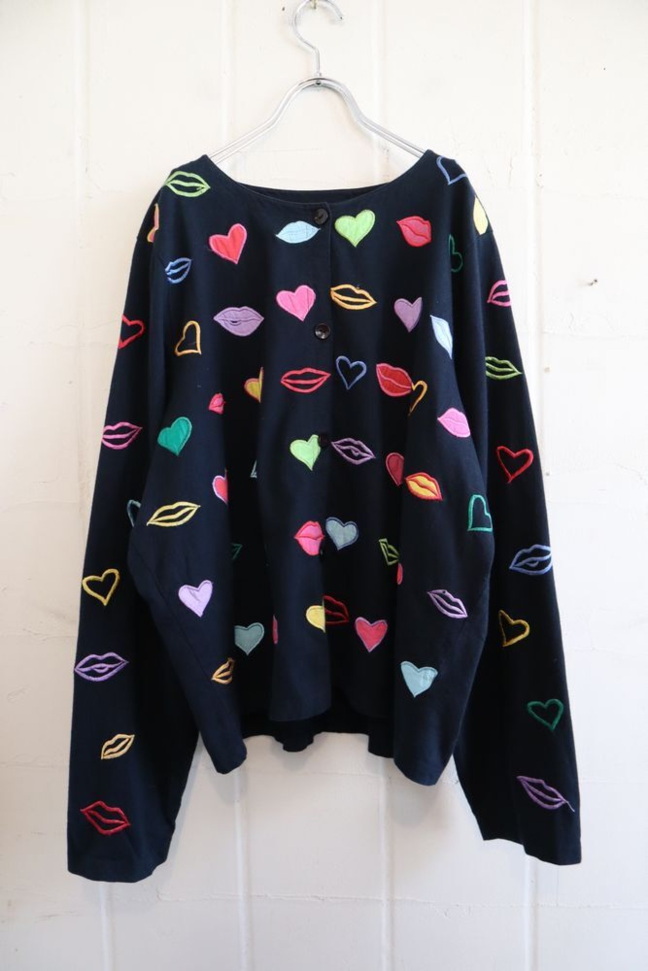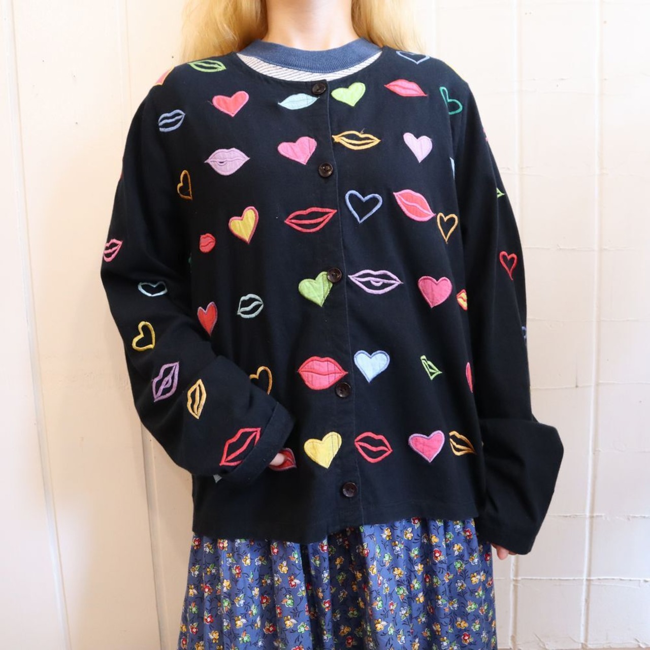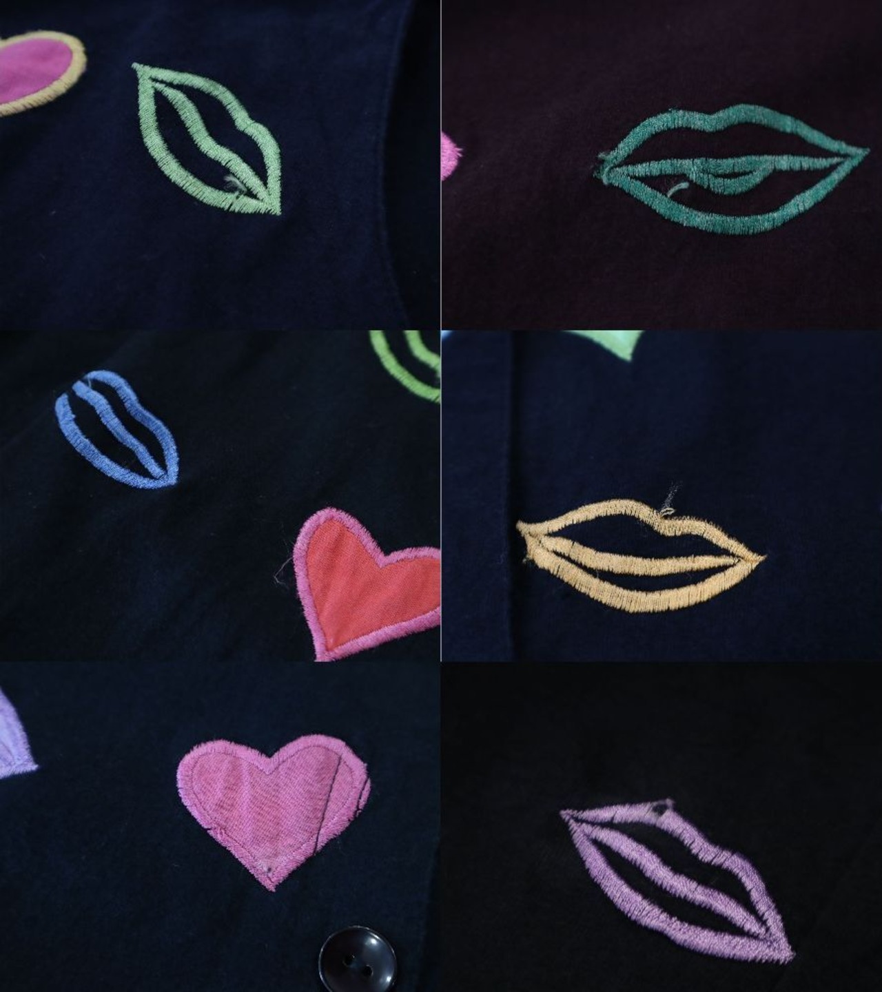 カラフルなハートやリップの刺繍・パッチが可愛いトップス。