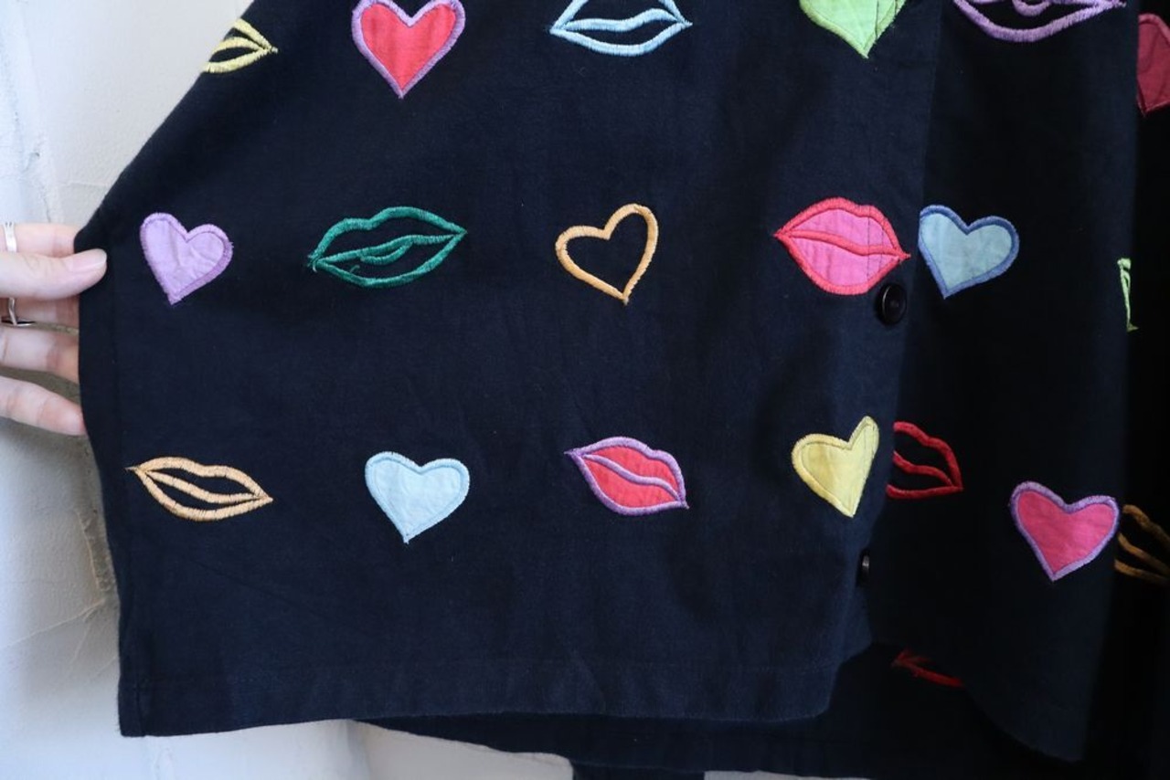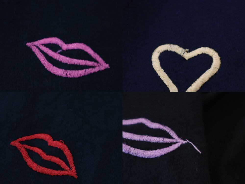 "Michael Simon" black × pink heart & lip embroidery tops [l-1221]