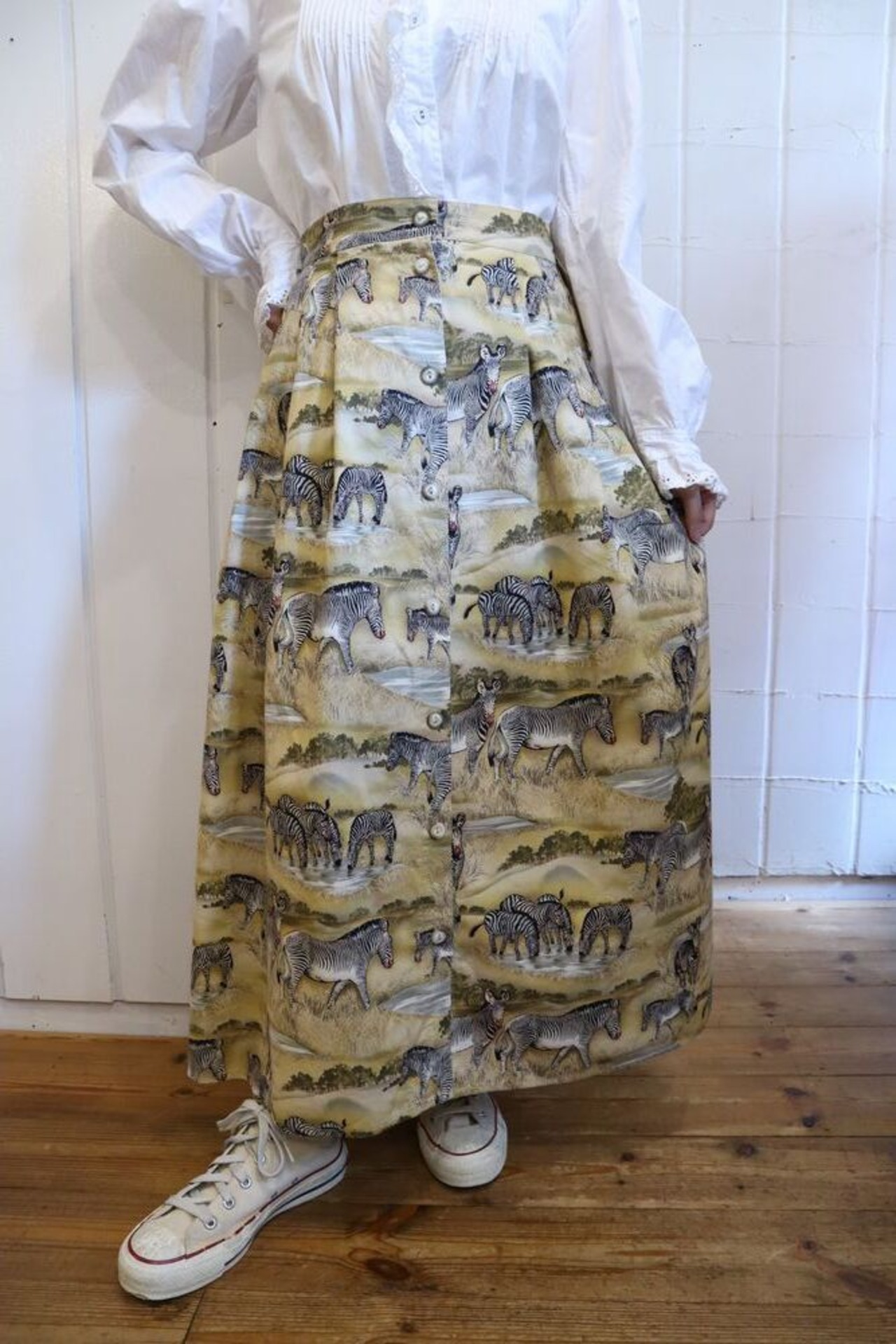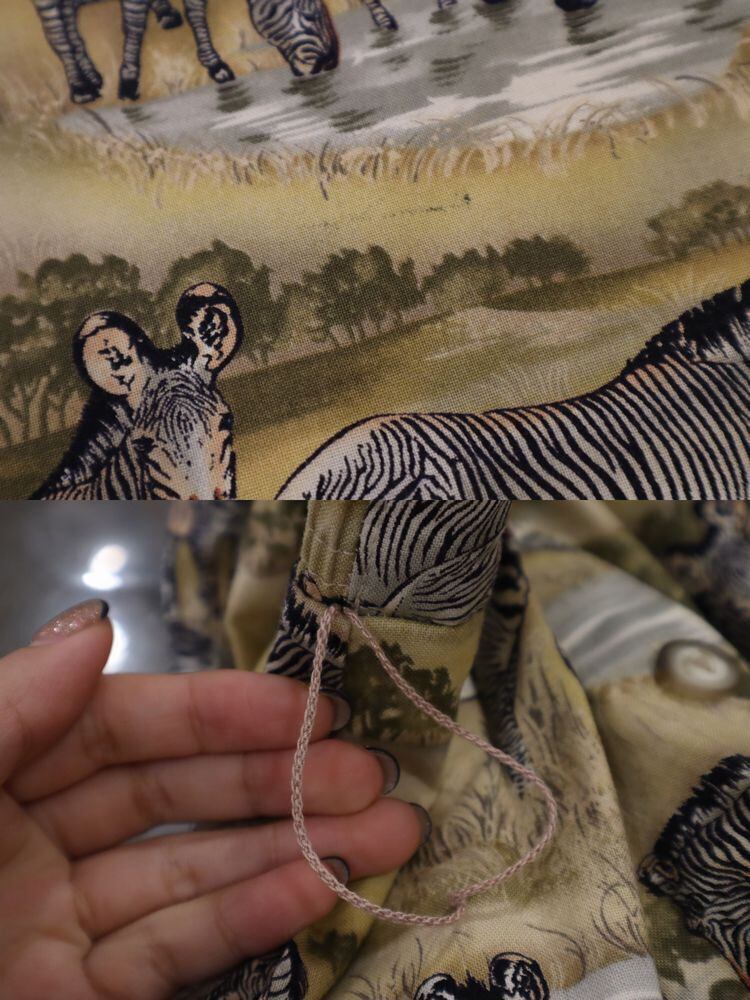 シマウマと風景の総柄が目を惹きます!