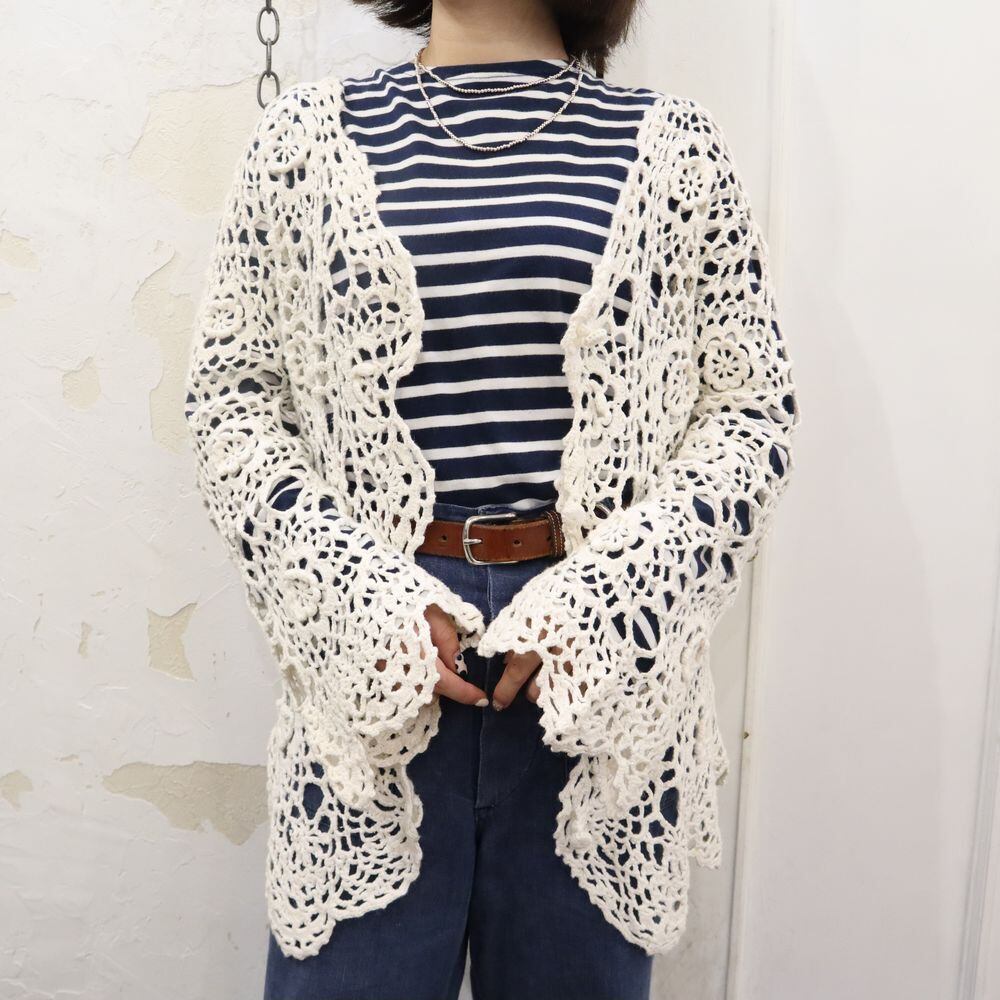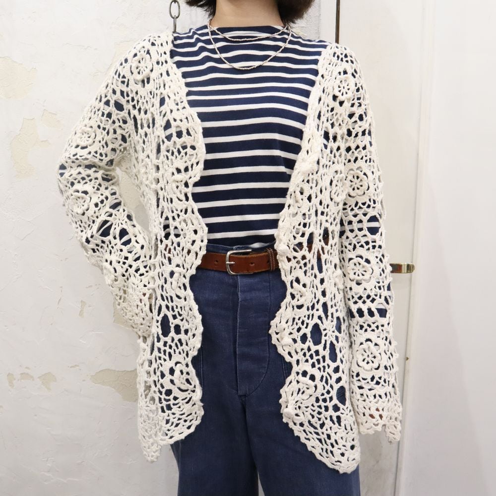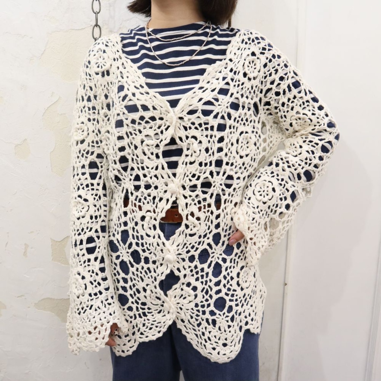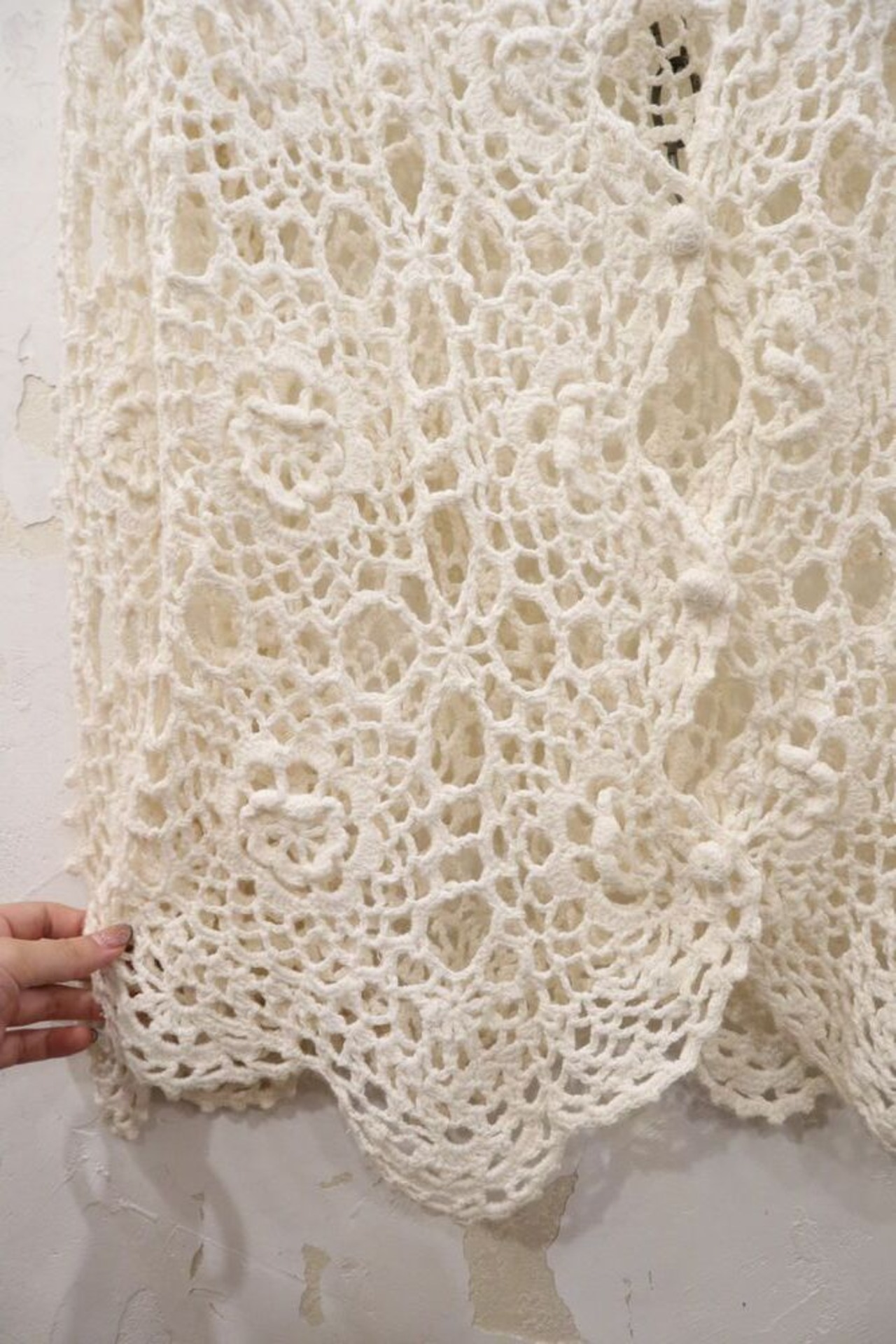 ivory flowers crochet scalloped detail cardigan [l-1232]