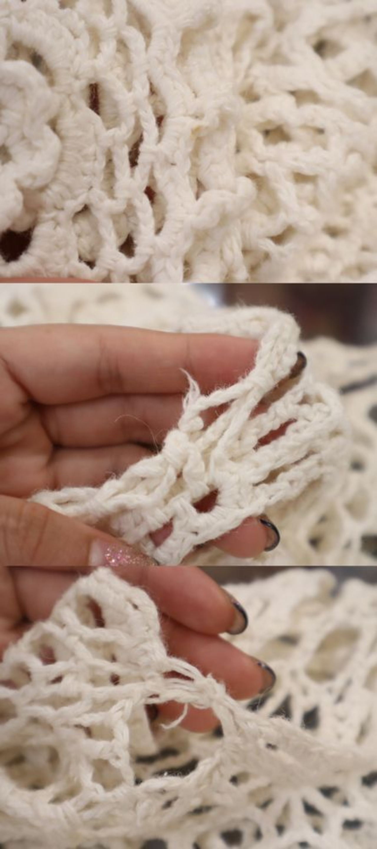 かぎ編みアイテムの特性上、糸のゆるみやホツレがいくつか見受けられますが着用に問題はございません。