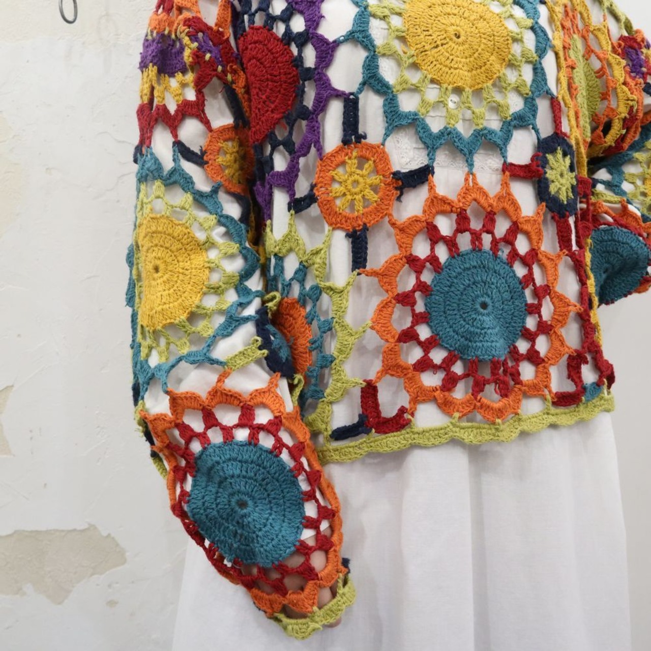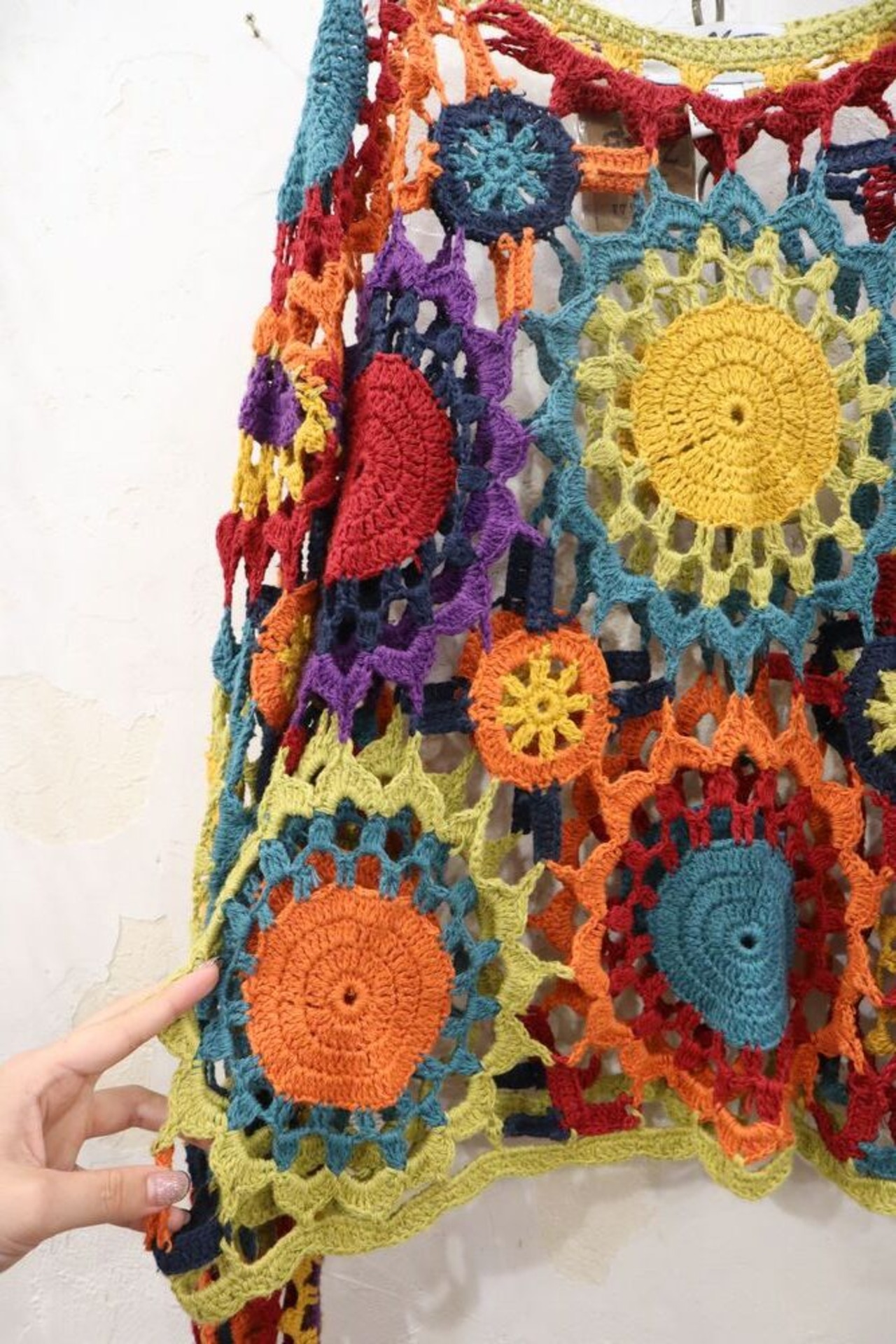 ヒッピーな編み目、カラーリングが可愛い一枚。