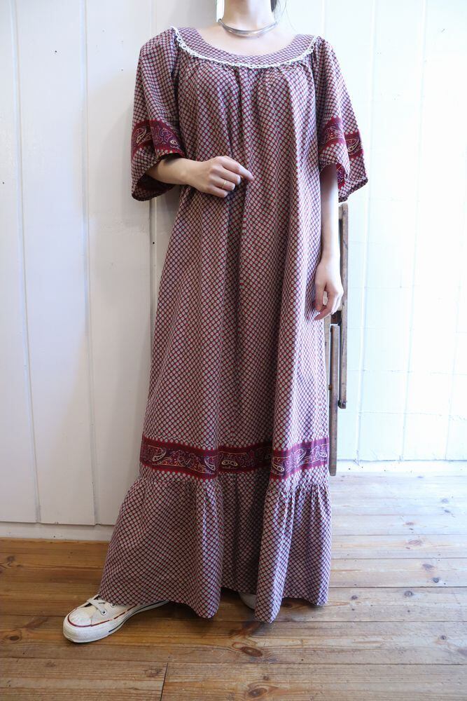 70s red × white flower & paisley Hawaiian dress [l-41731]