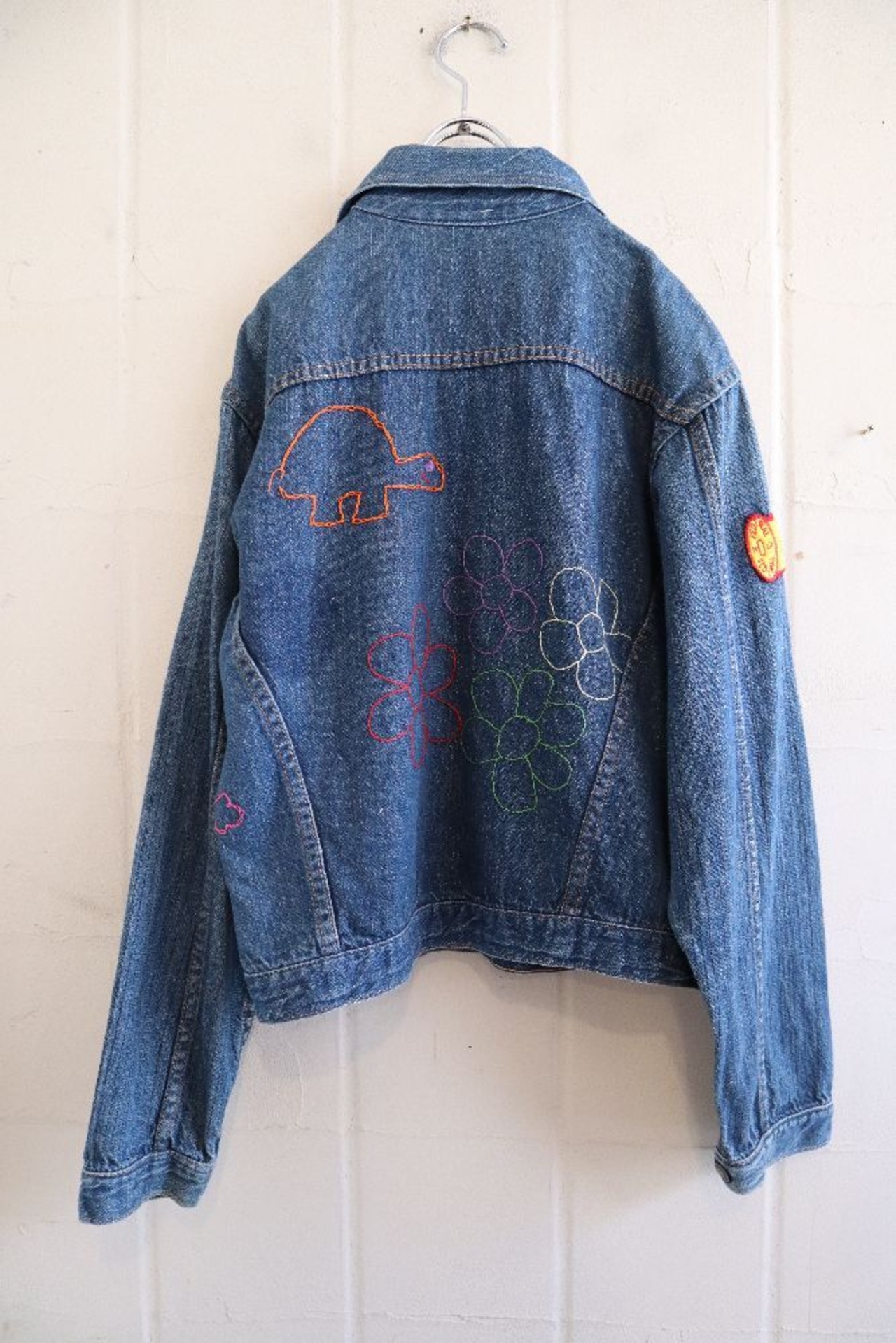 blue×colorful embroidery & wappen denim jacket [l-1262]