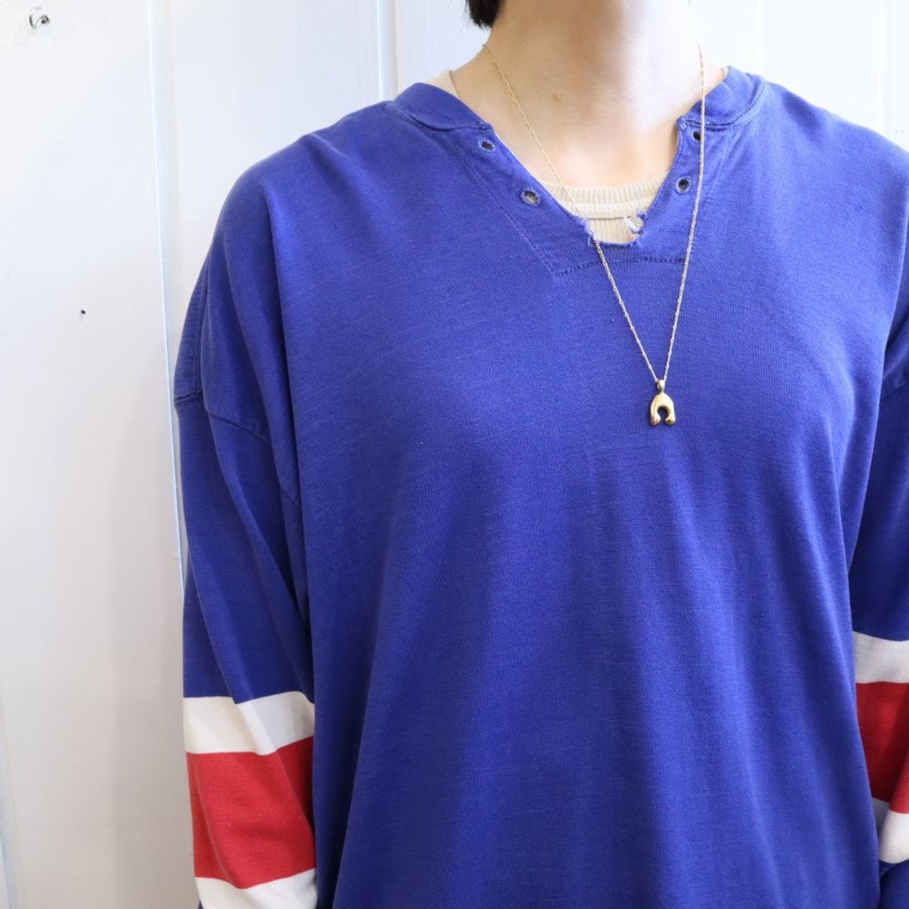 60~70s blue×red×white long sleeve hockey shirt [k-1266]