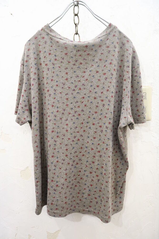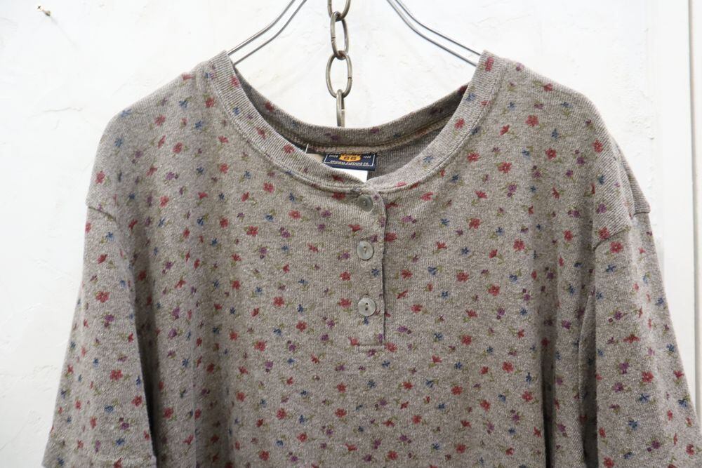 made in USA gray × pink henry neck flower tops [l-1275]