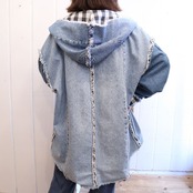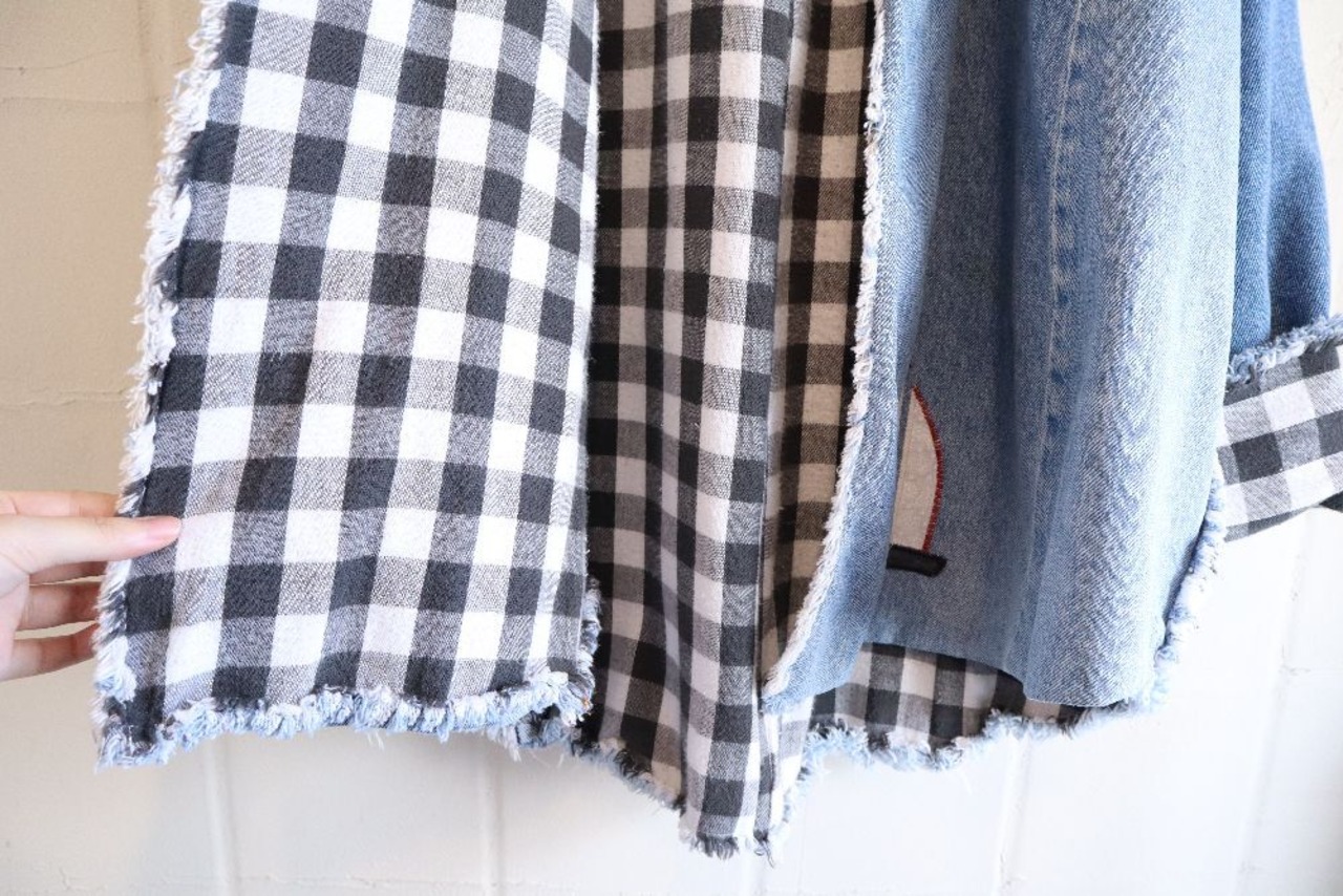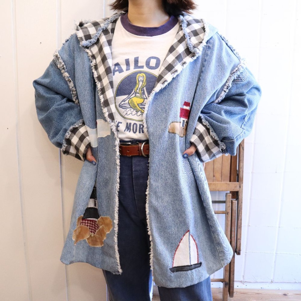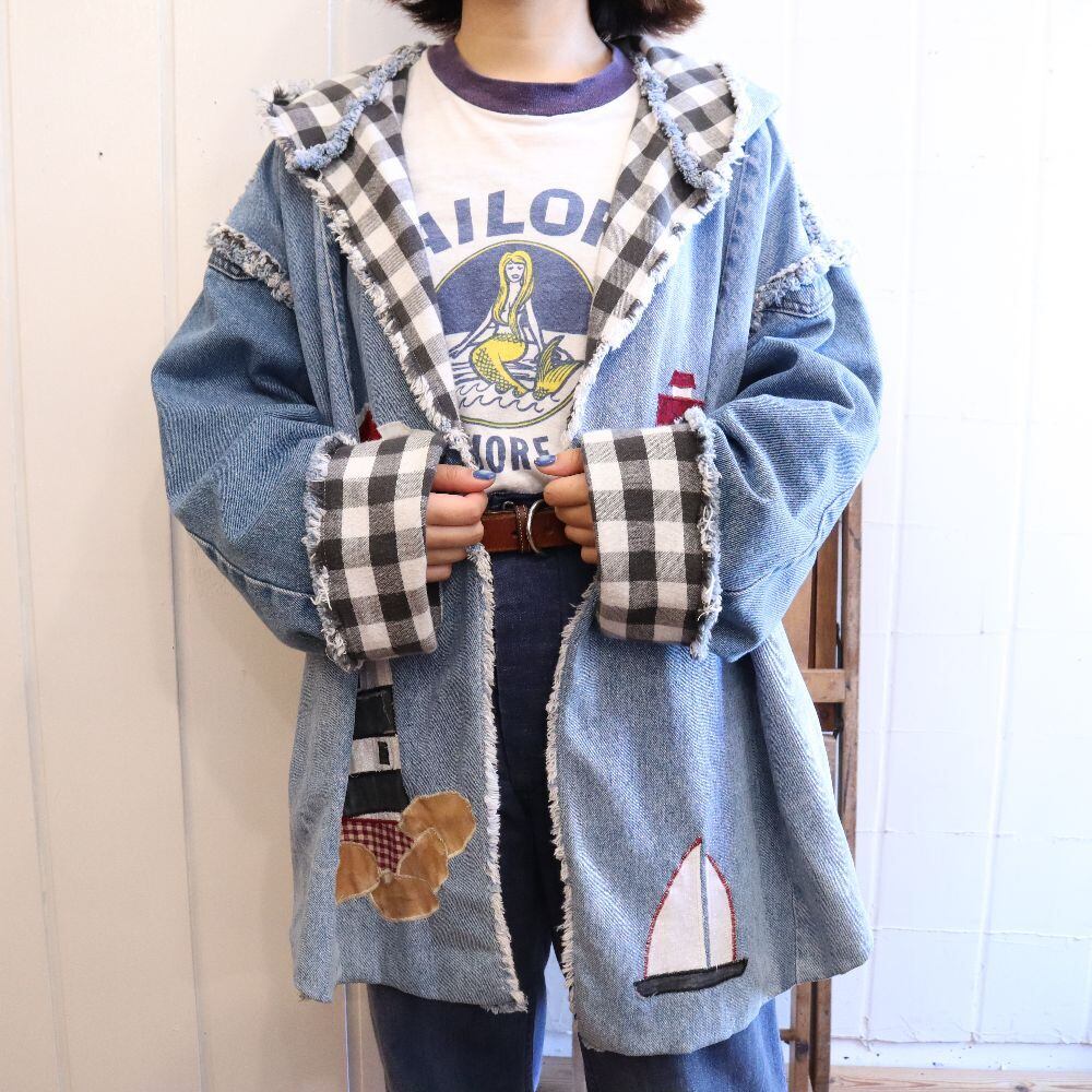 blue×black×white lighthouse patch reversible denim jacket [l-1281]