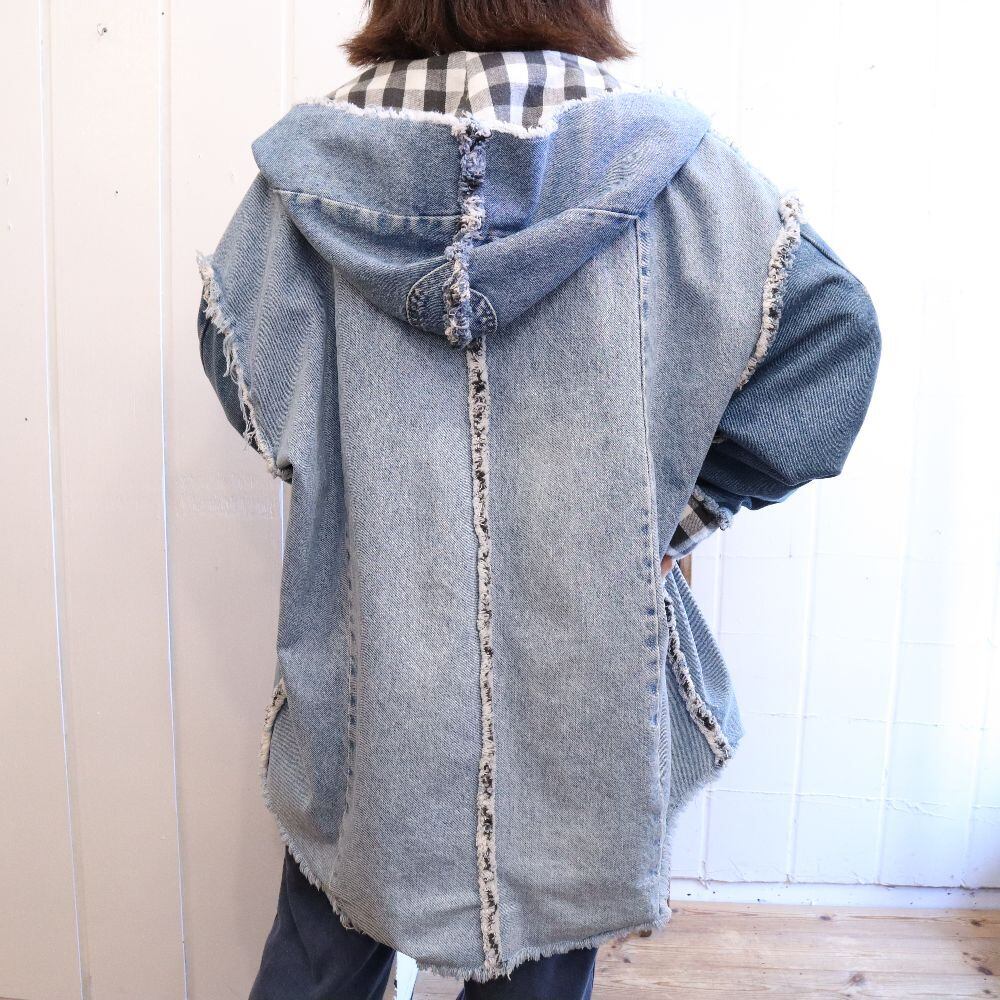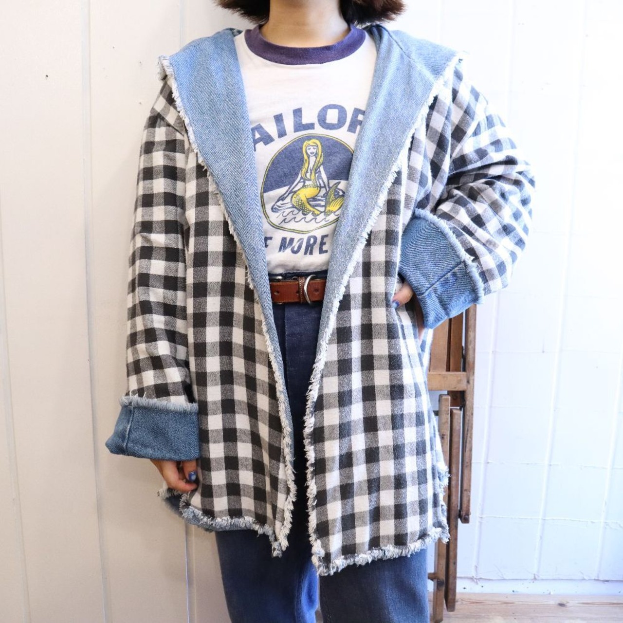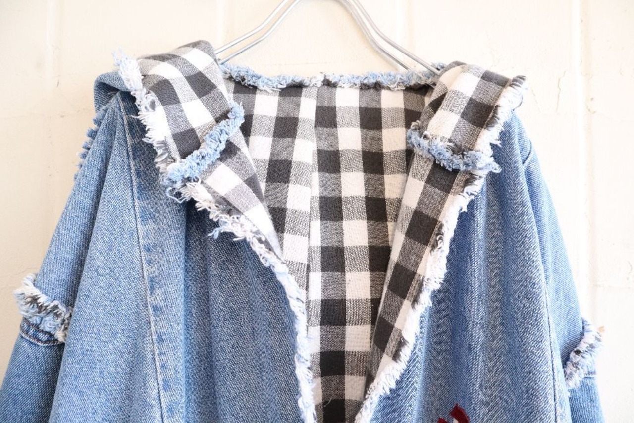 大きなフードとパッチ、ブラック×ホワイトのギンガムチェックが可愛いです♡