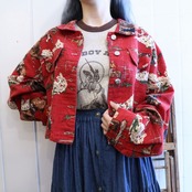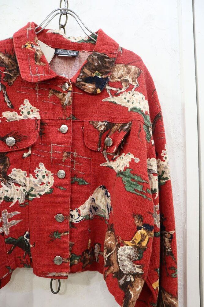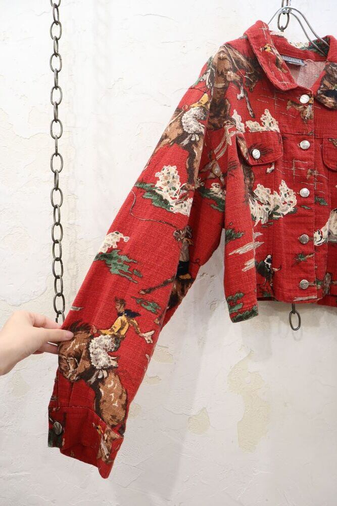 made in USA red×brown×green horse pattern cotton jacket [l-1287]