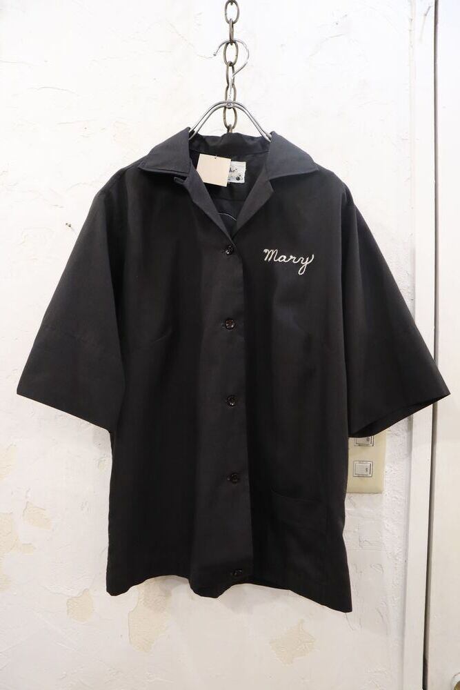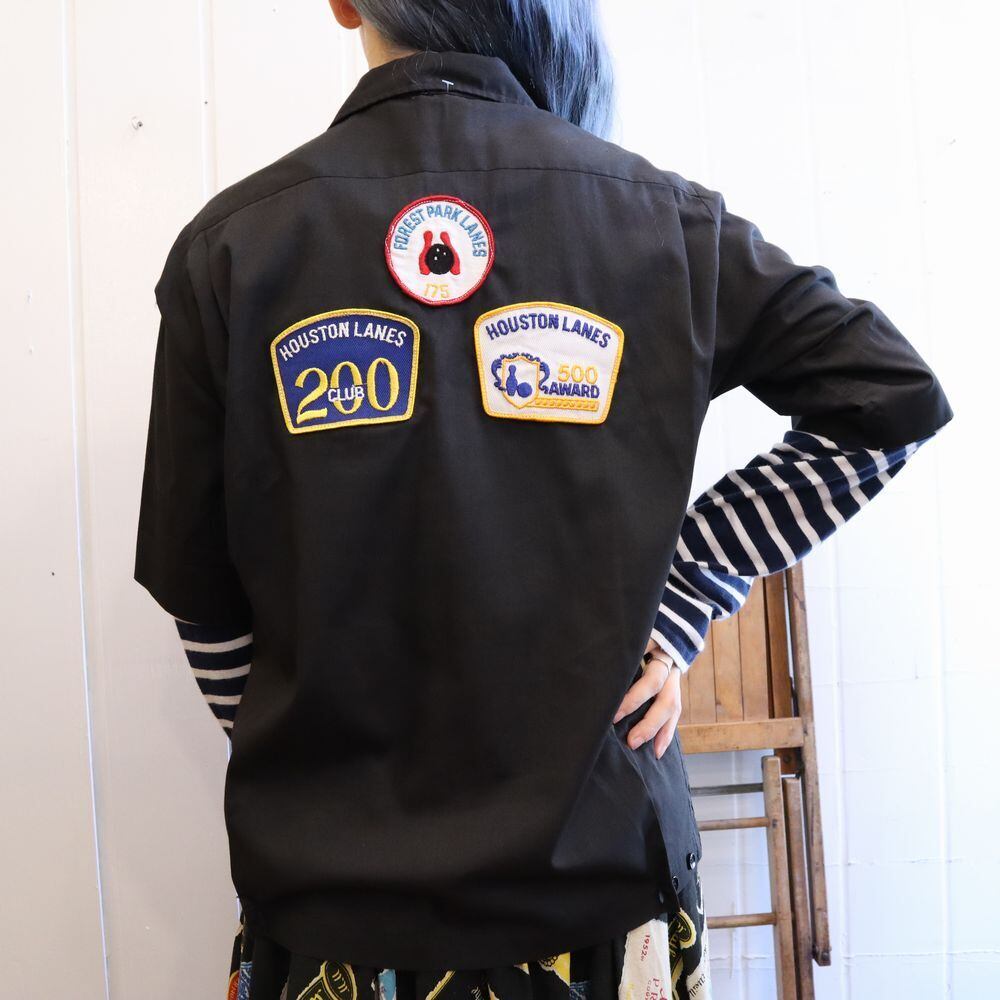 60-70s black×white patch&embroidery bowling shirt [l-1288]
