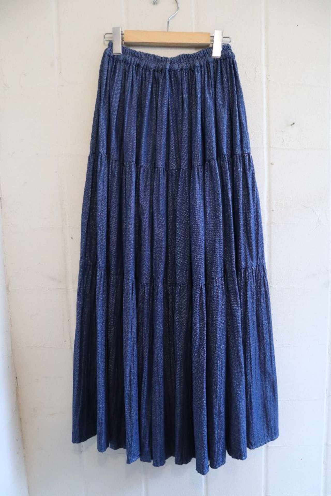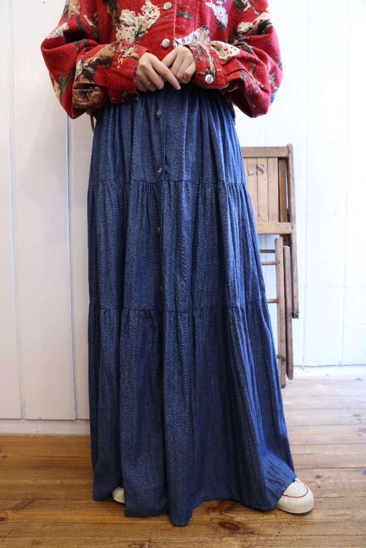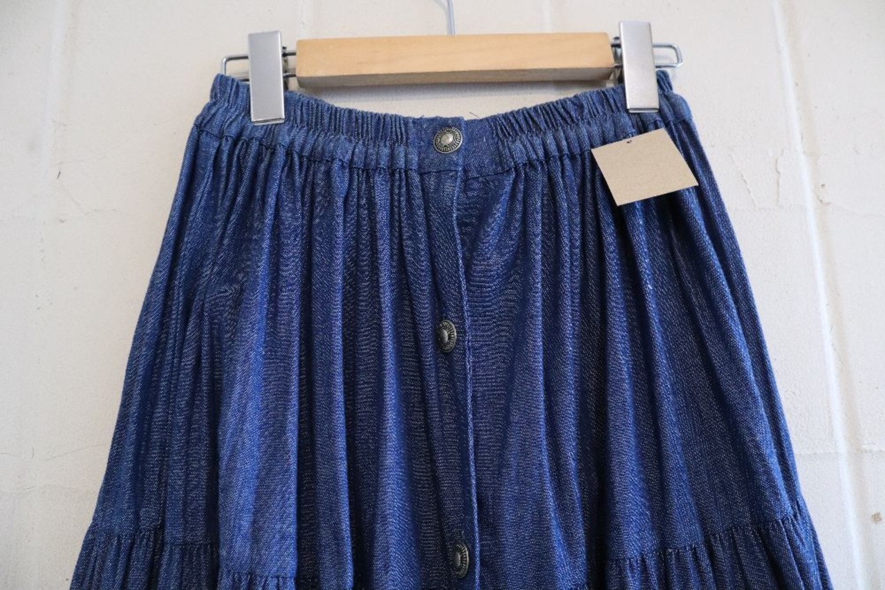 シャンブレーのような少し薄手のデニムティアードスカート。