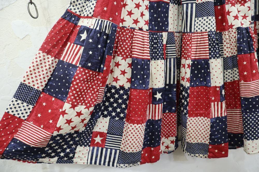 made in USA navy×red×white national flag pattern tiered cotton skirt [l-1297]