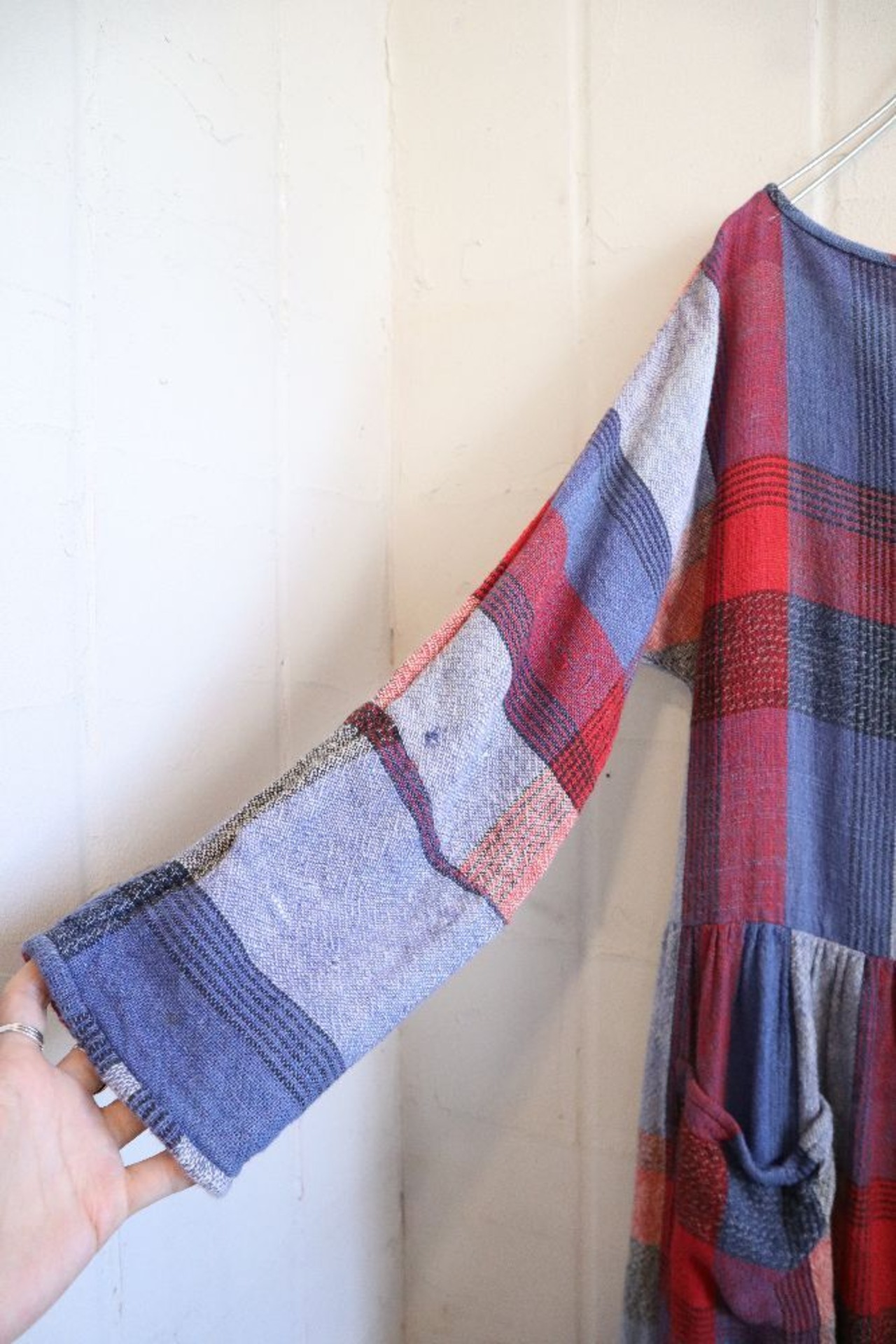 blue × red plaid long sleeve Indian cotton dress [l-1298]