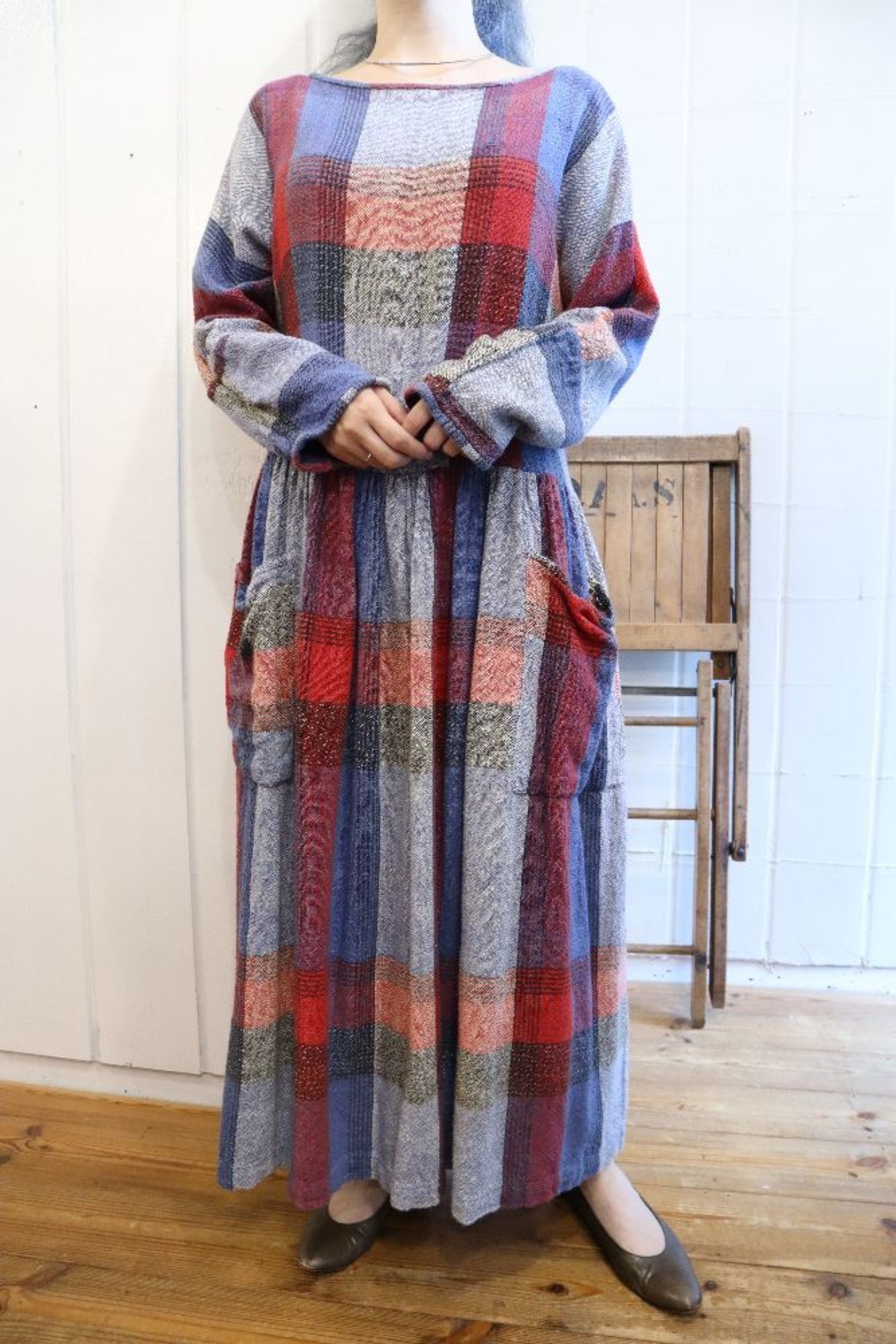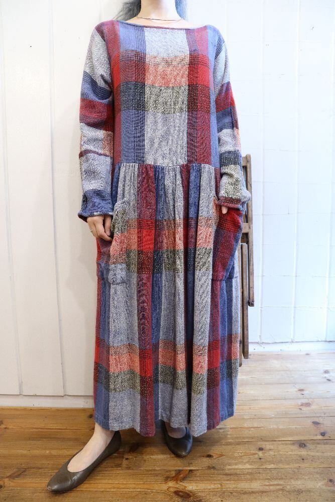 大きめのチェックとゆったりめのシルエットや生地感が可愛いドレスです*
