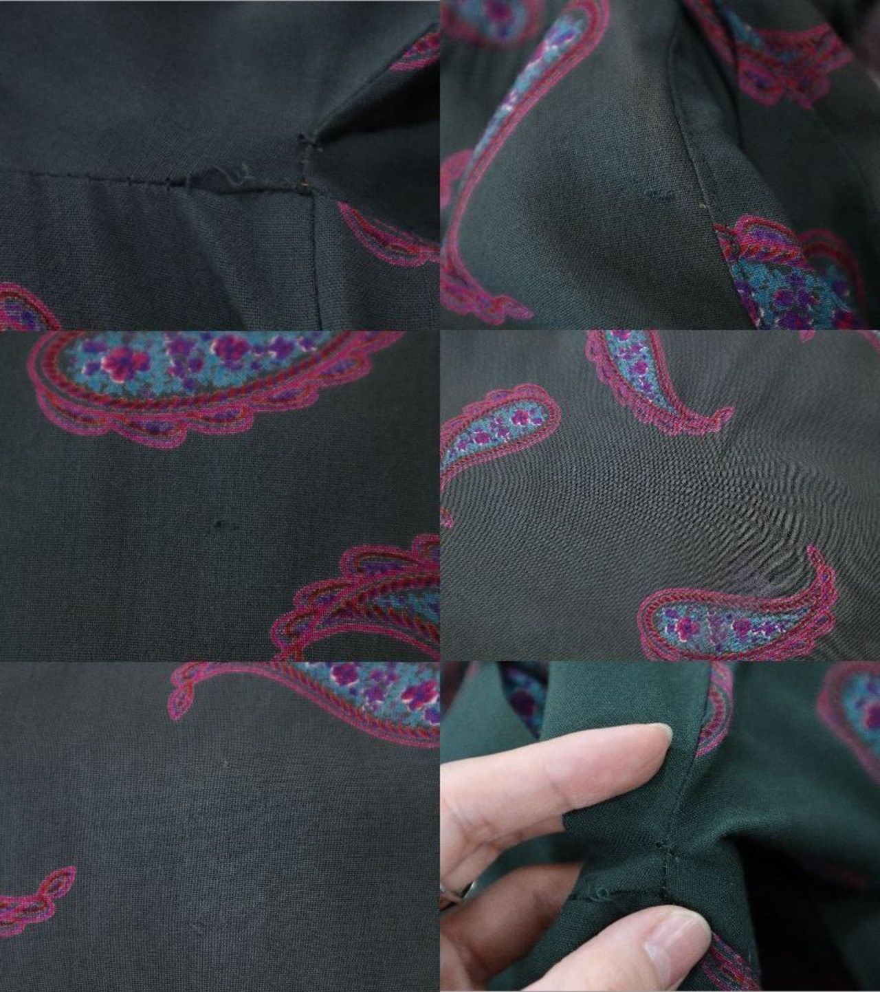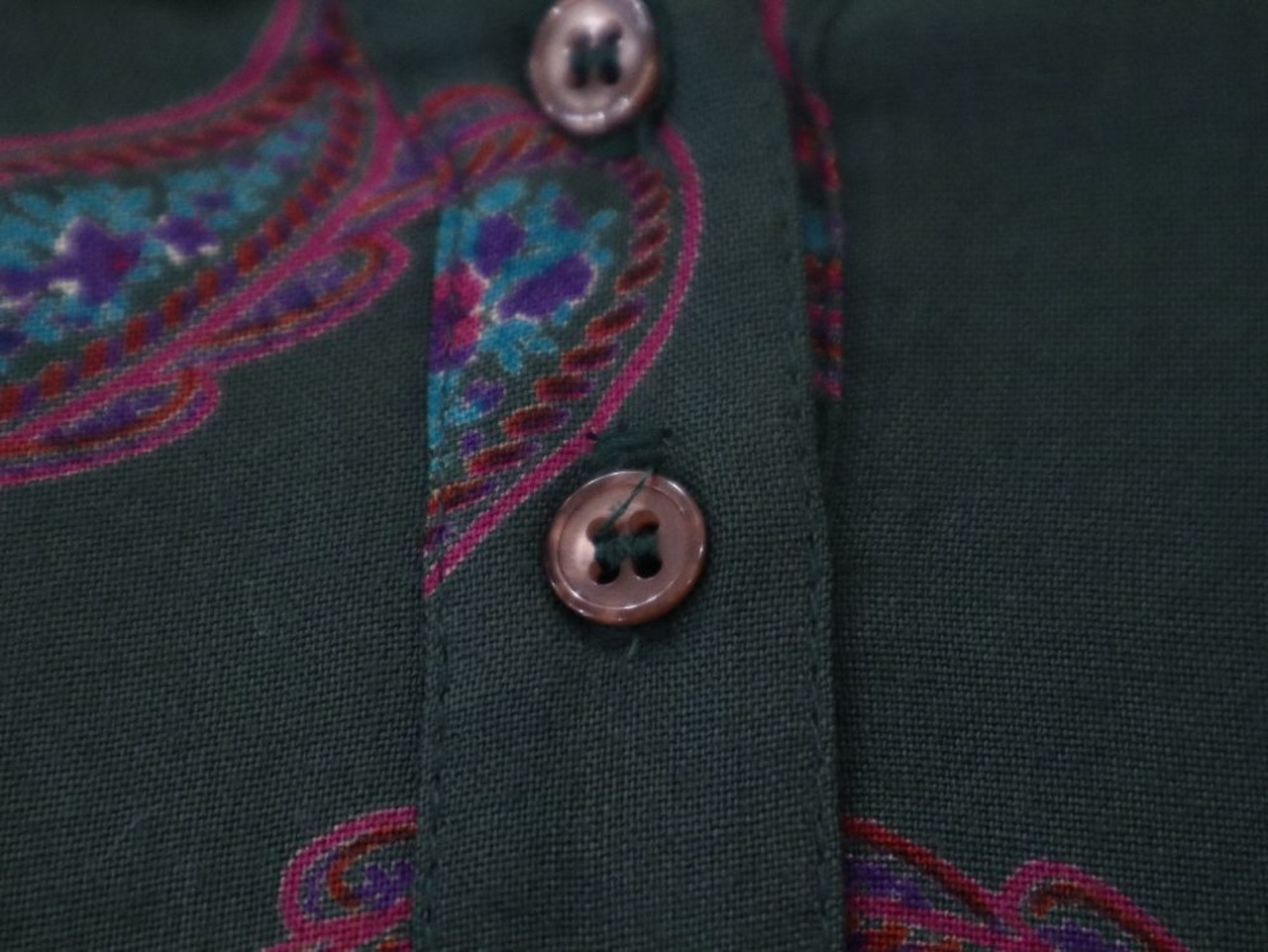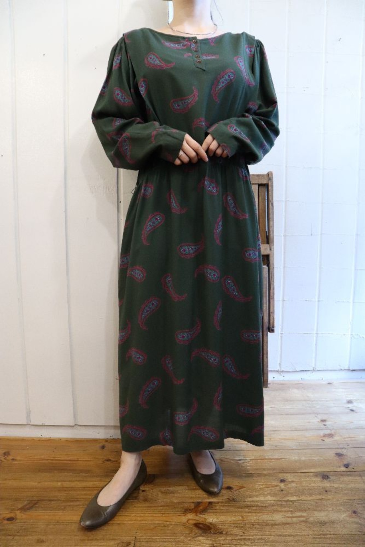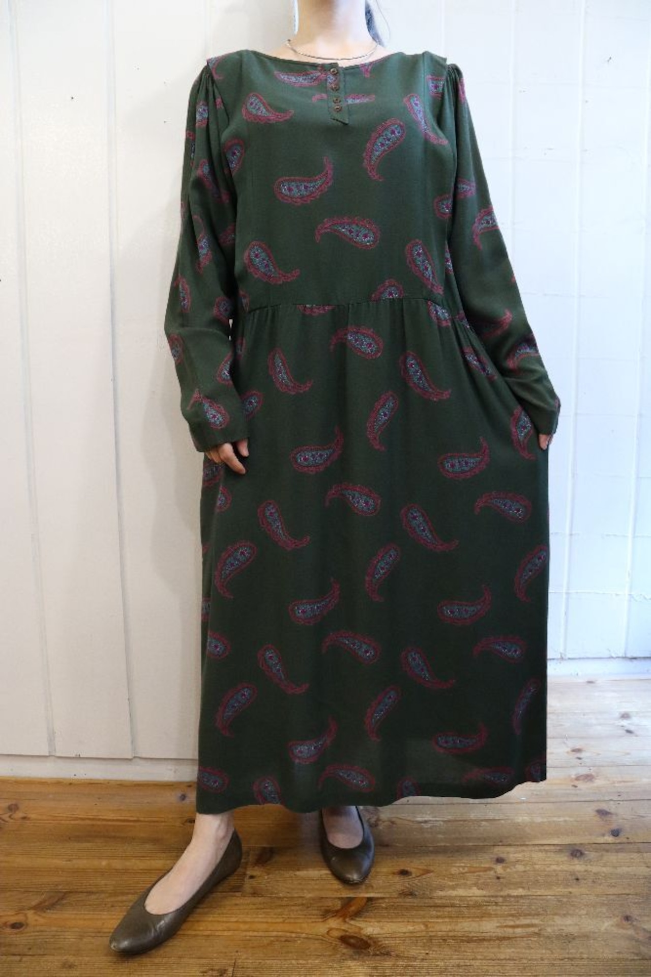 dark green × dull pink paisley long sleeve dress [l-1299]