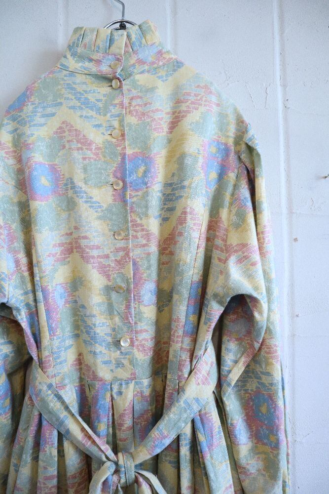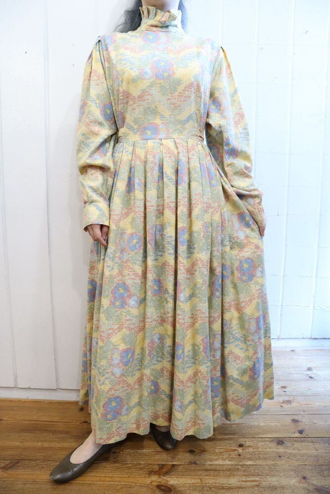 "Laura Ashley" pastel yellow × light blue stand collar dress [l-1300]