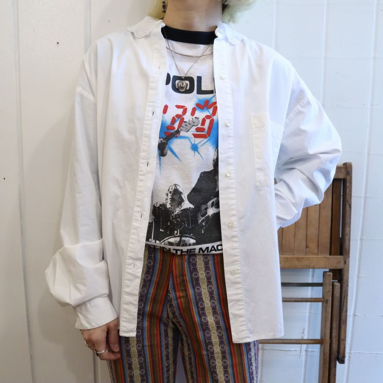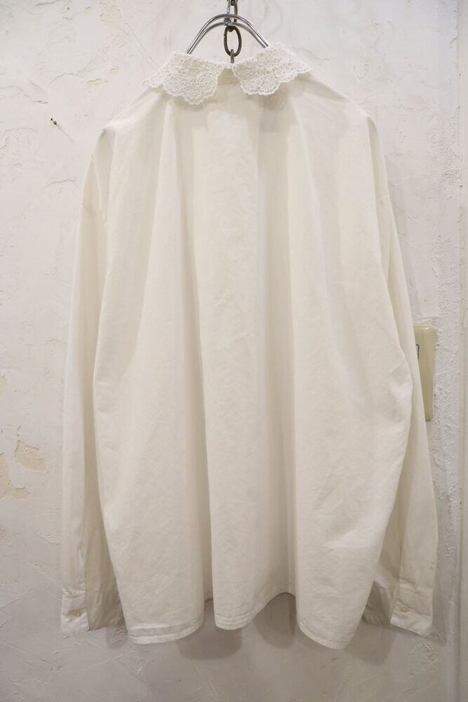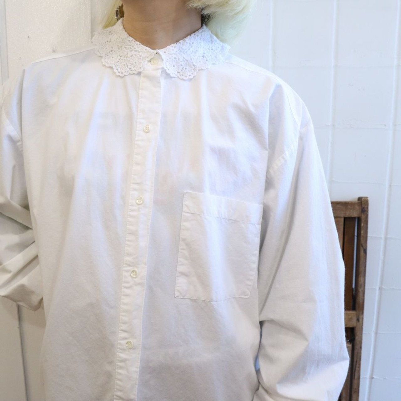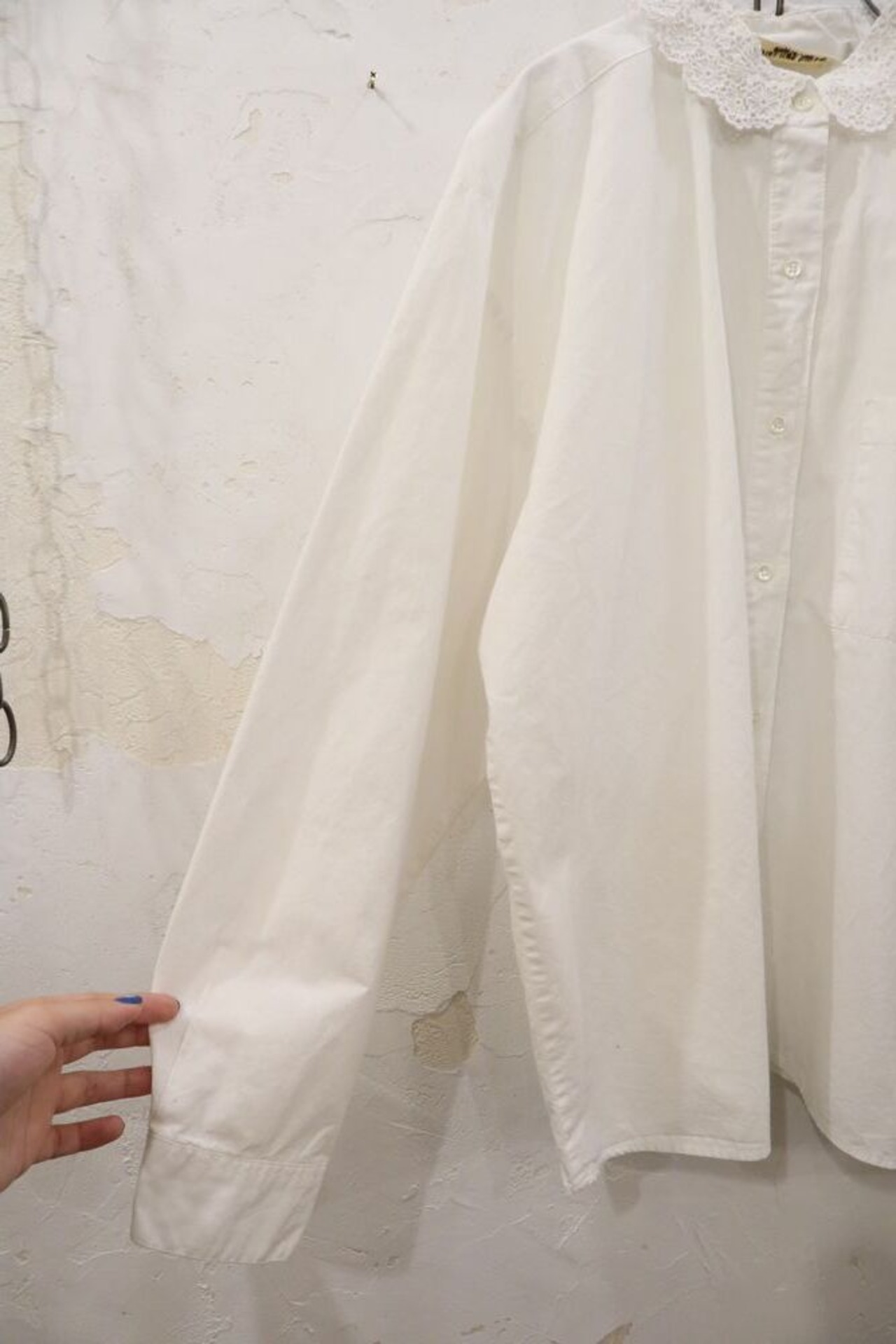 made in USA white plain flowerlace long sleeve shirt [l-1302]