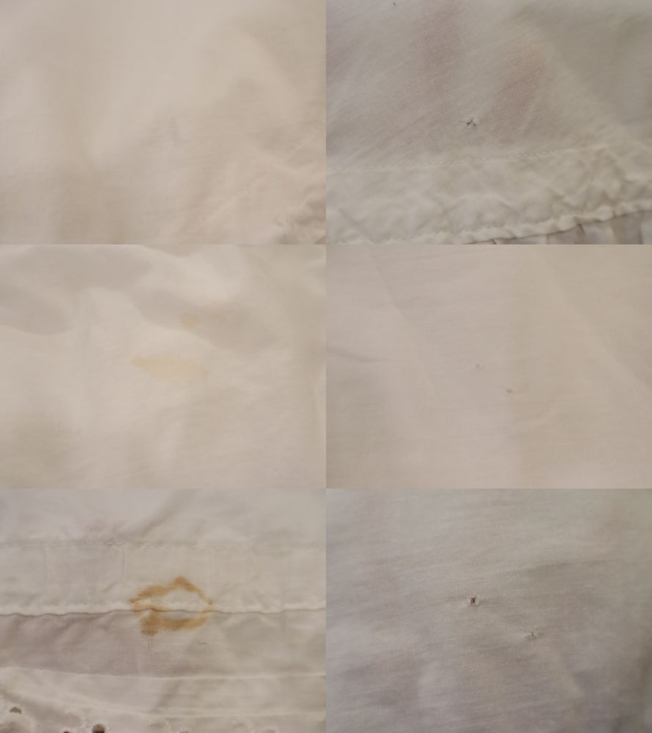 いくつかシミ汚れや小さな傷、生地のツレがございますが、古着の味として着て頂けるかと思われます。