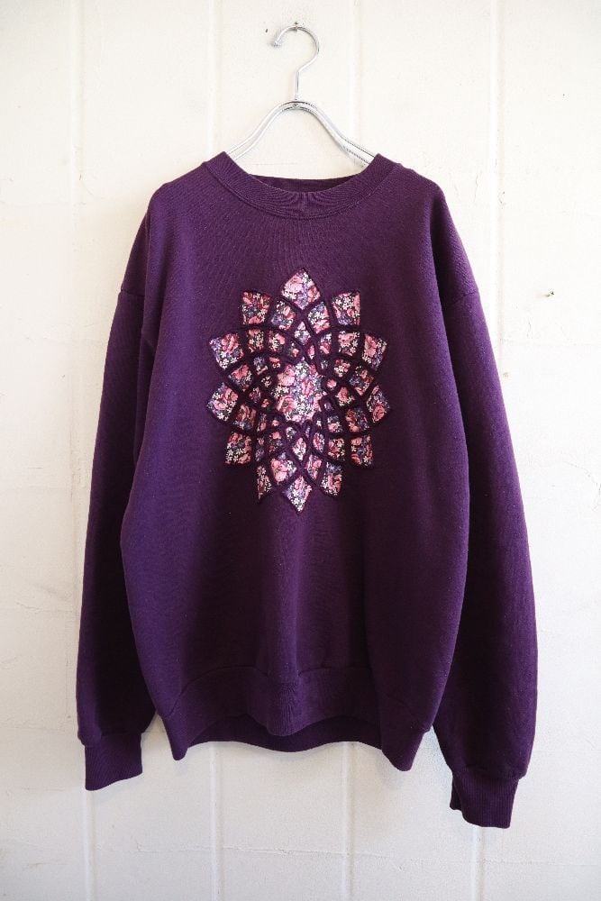 90s purple×pink patchwork design sweat [l-1316]